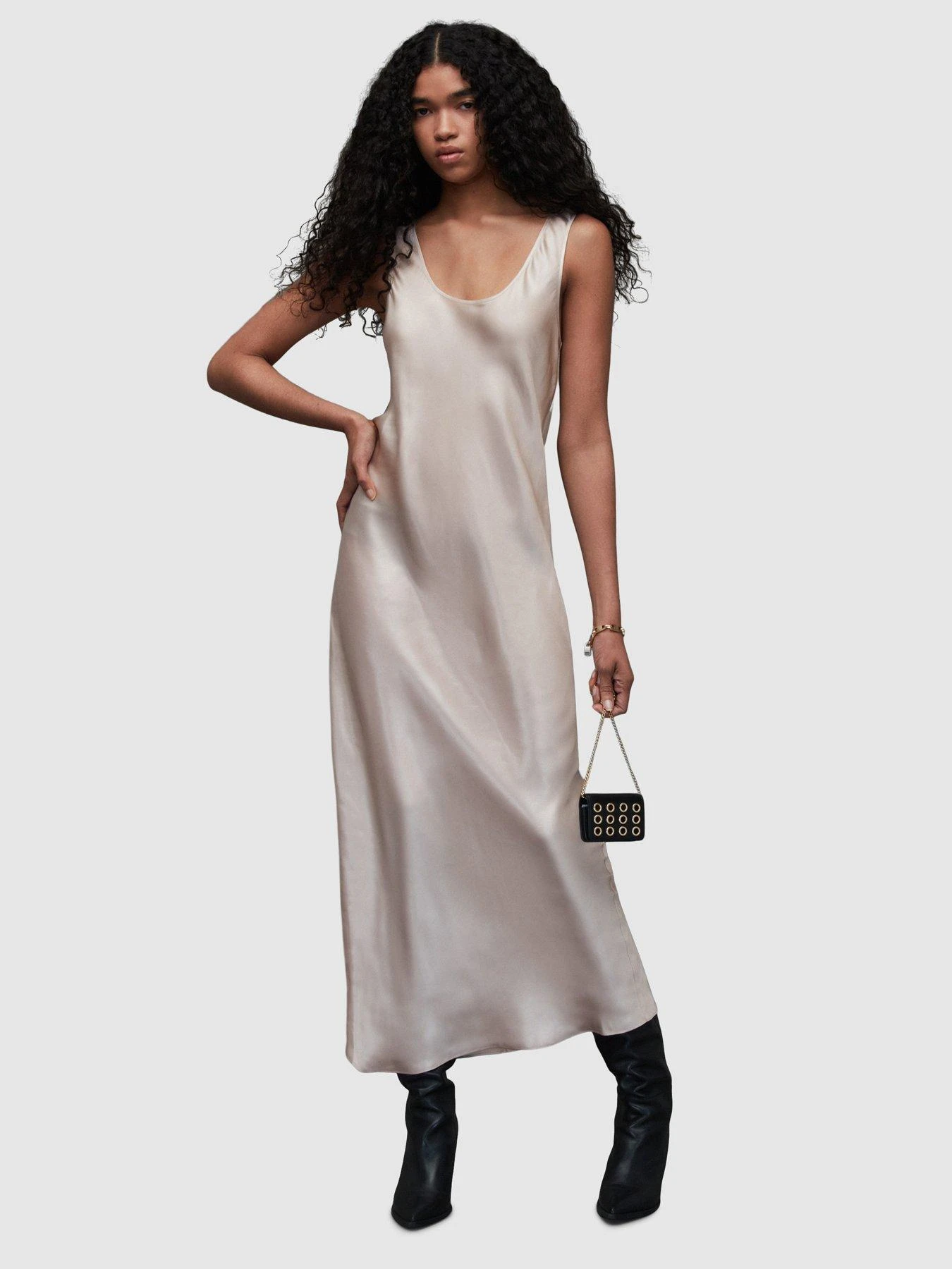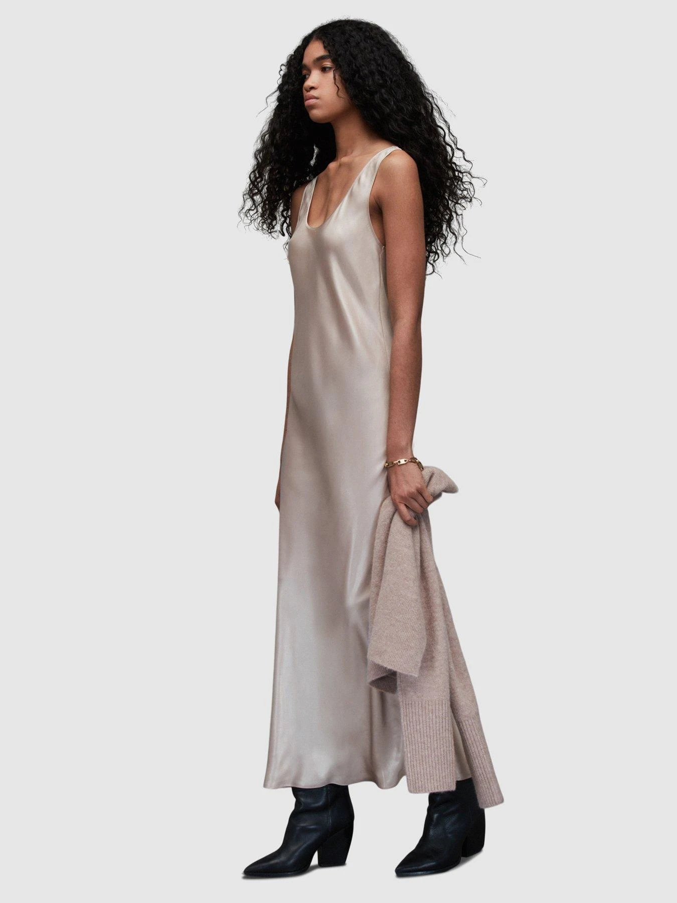 - Turn heads wherever you go with this chic satin dress, cut to a figure-skimming silhouette that’s effortlessly flatteringĀ