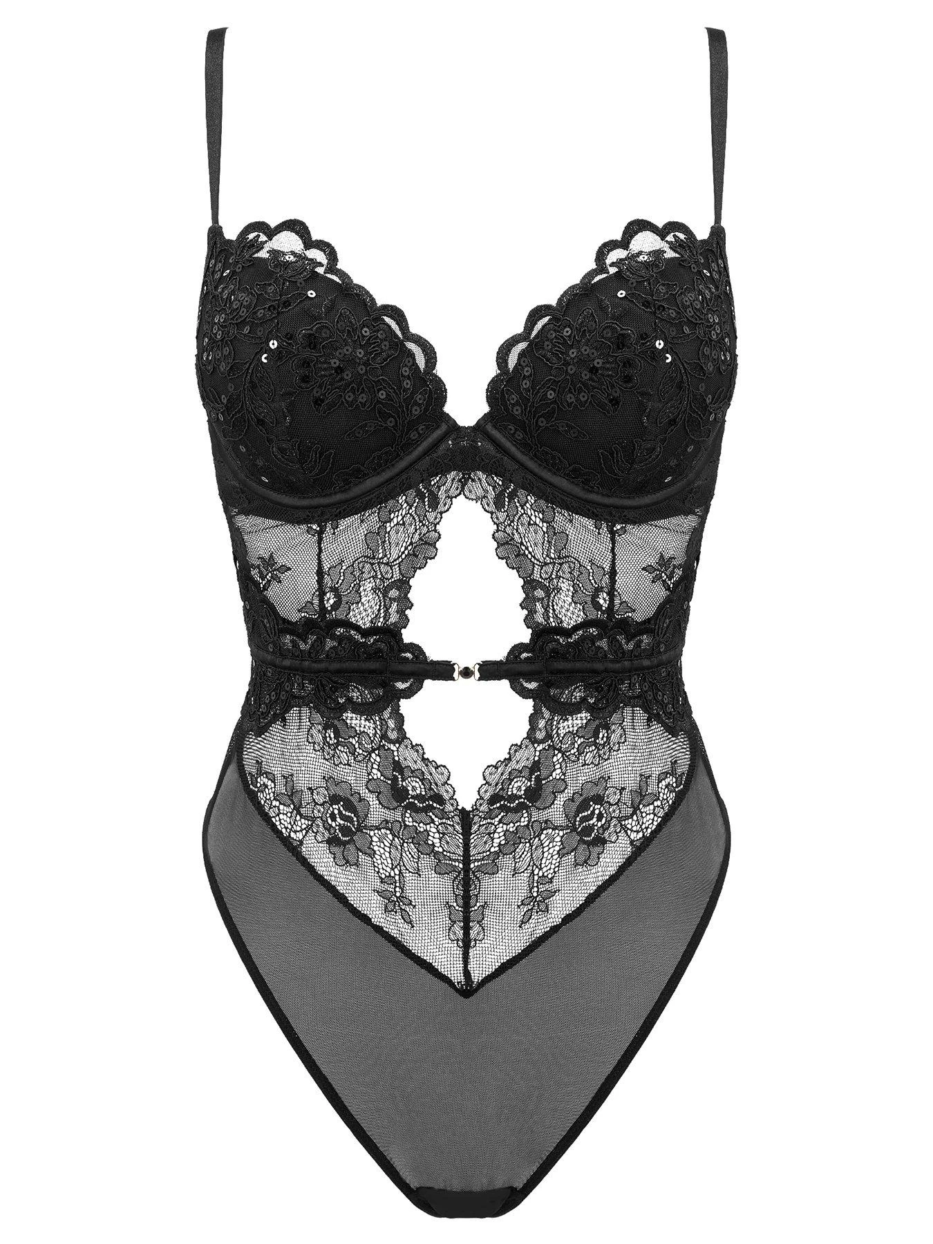The Icon Padded Body combines elegance with effortless seduction. Eye-catching sequin embroidery glistens across the front, with underwired cups for support and gold hardware detail on the apex. The seductive cut-out draws the eye down to the centre front with gold hardware detail across the middle. The back is finished with a hook and eye fastening and a cut-out at the lower back for an alluring finish. Team yours with a pair of hold ups for a captivating after-dark ensemble..Belle wears body size 10 B/C & KK wears body Size 8 B/C