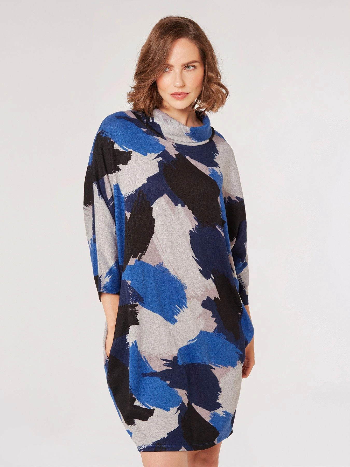 Apricot Paint Splash Cow Neck Cocoon Dress