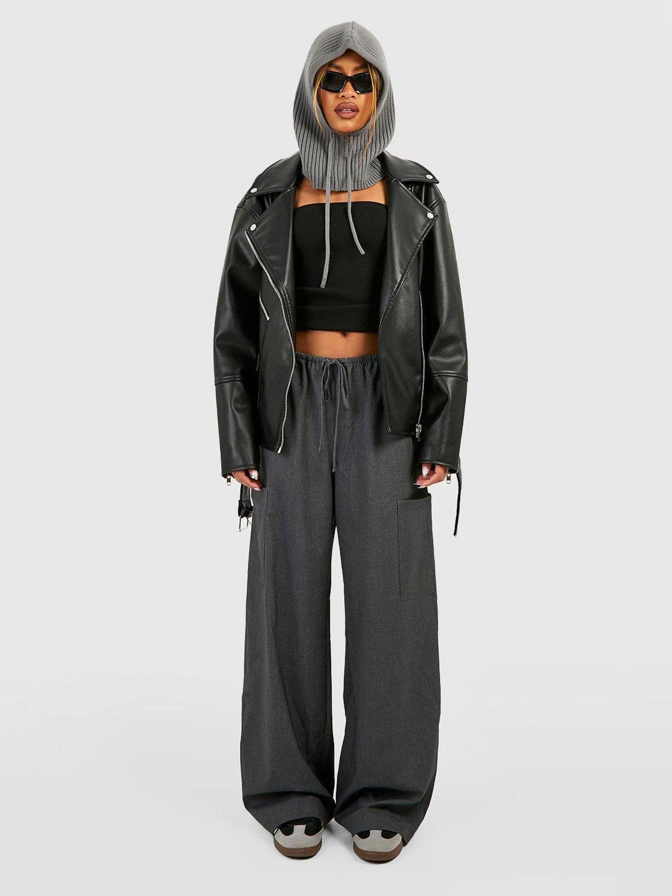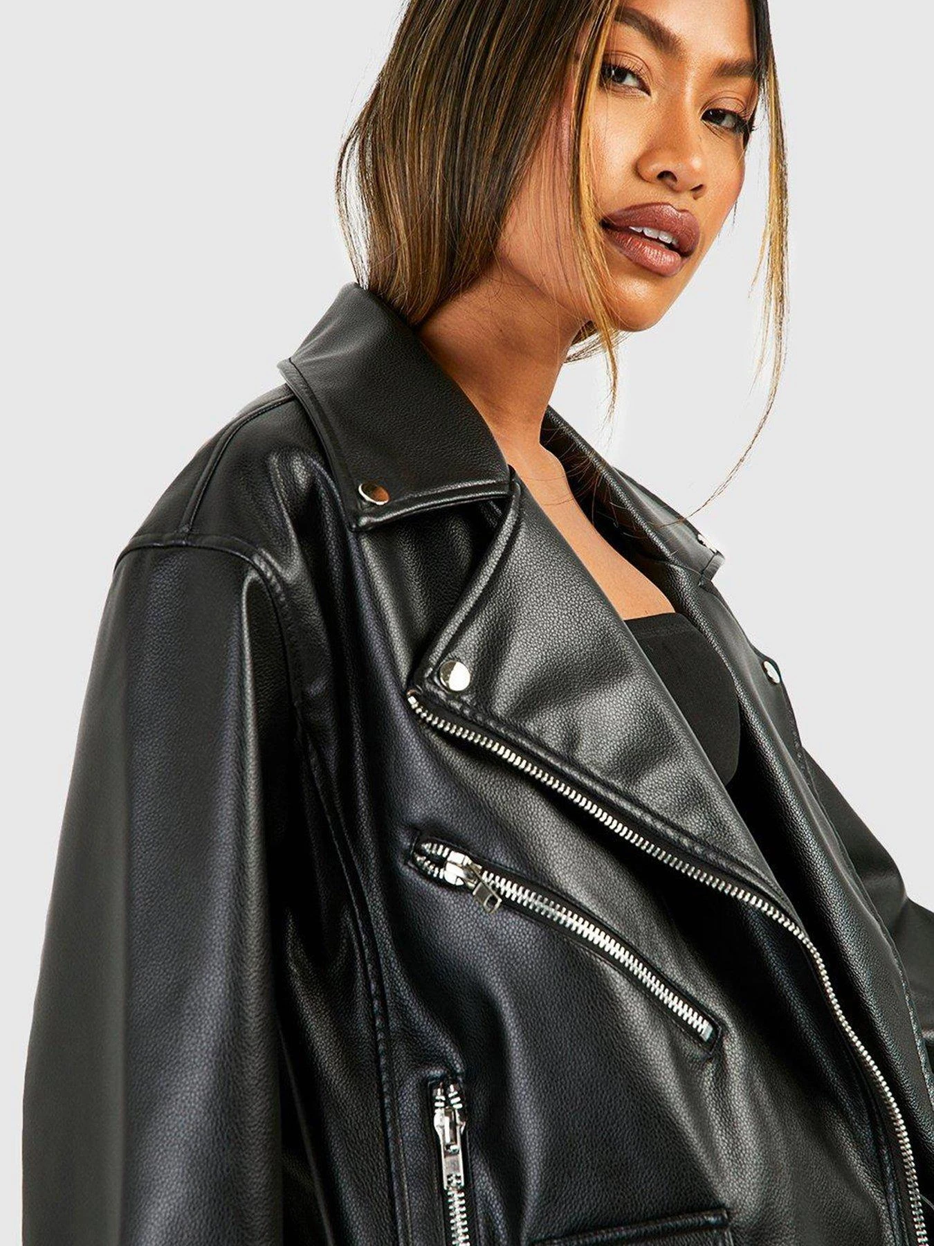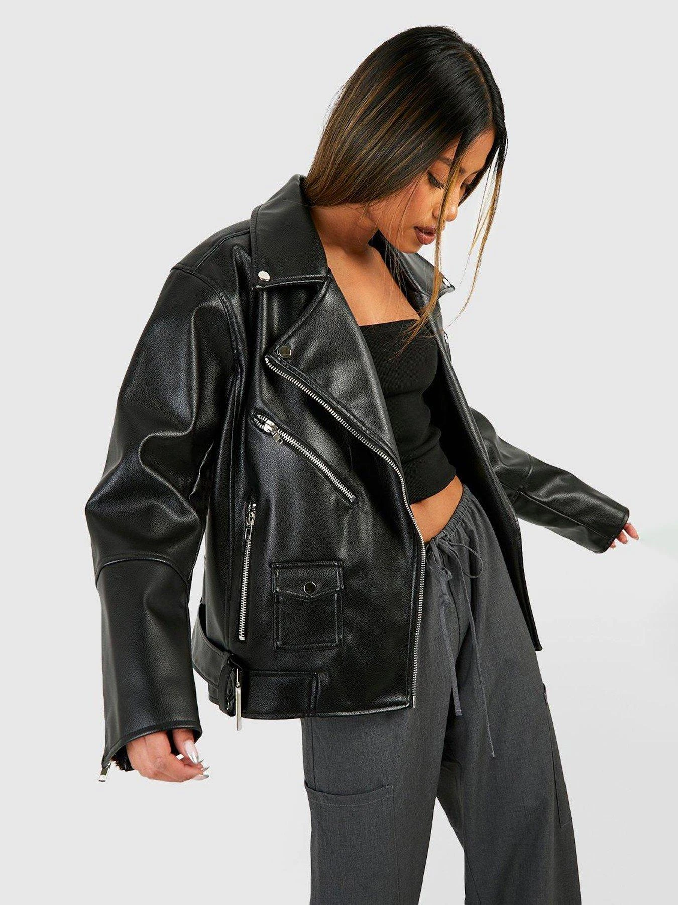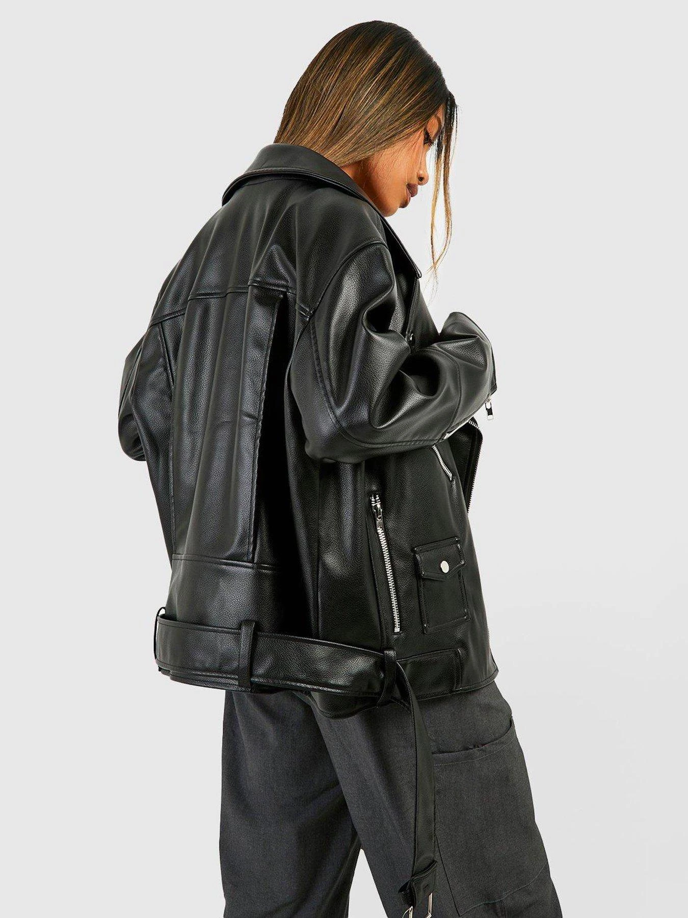 Boohoo Oversized Belted Biker Jacket – Black
