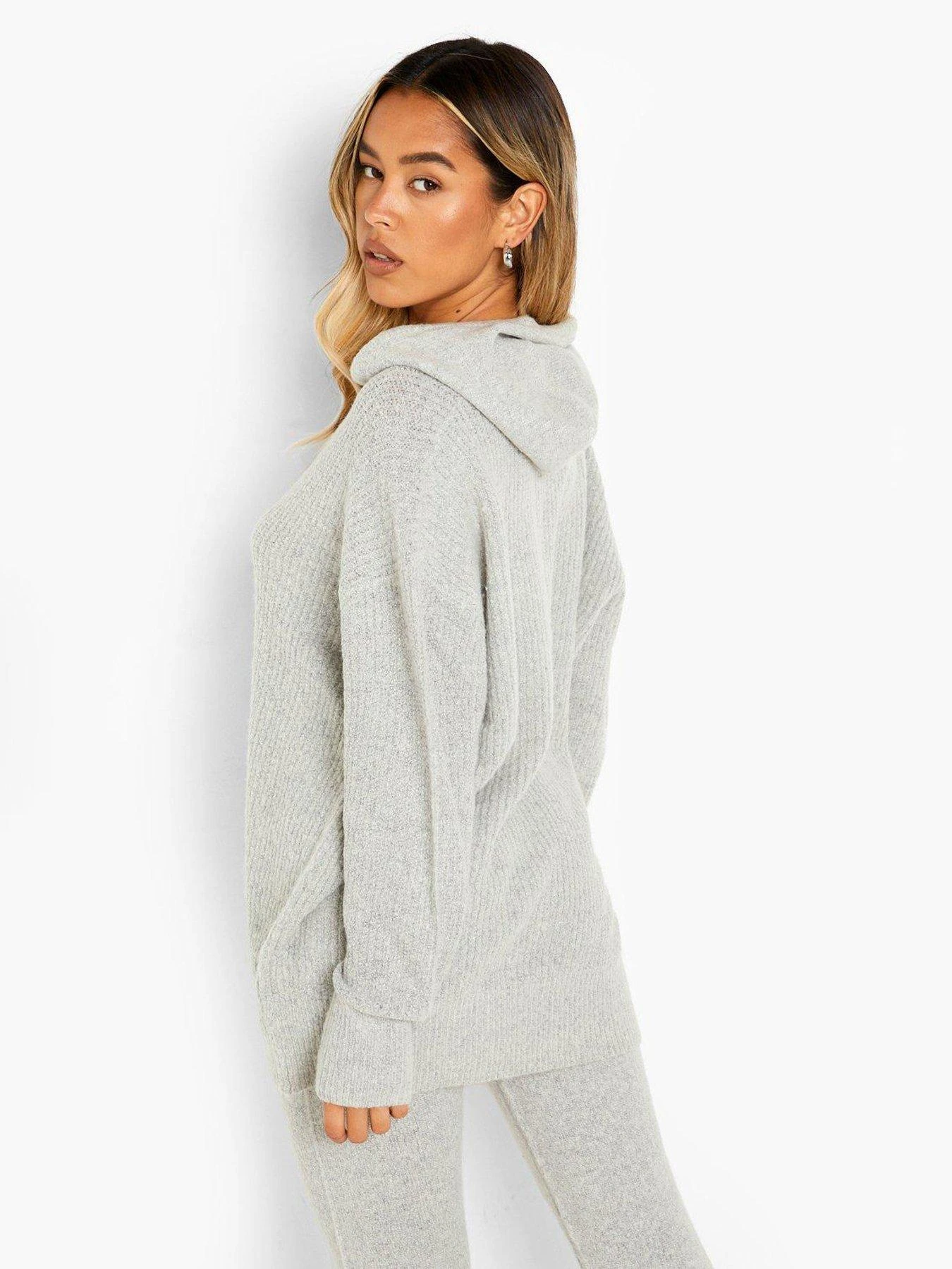 Boohoo Soft Knit Hoodie Co-ord Set – Grey