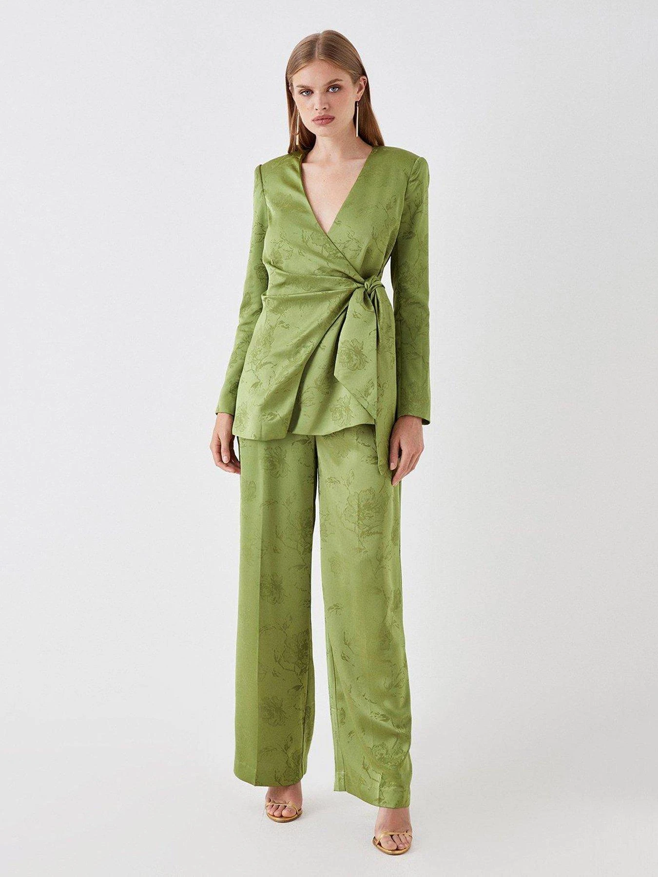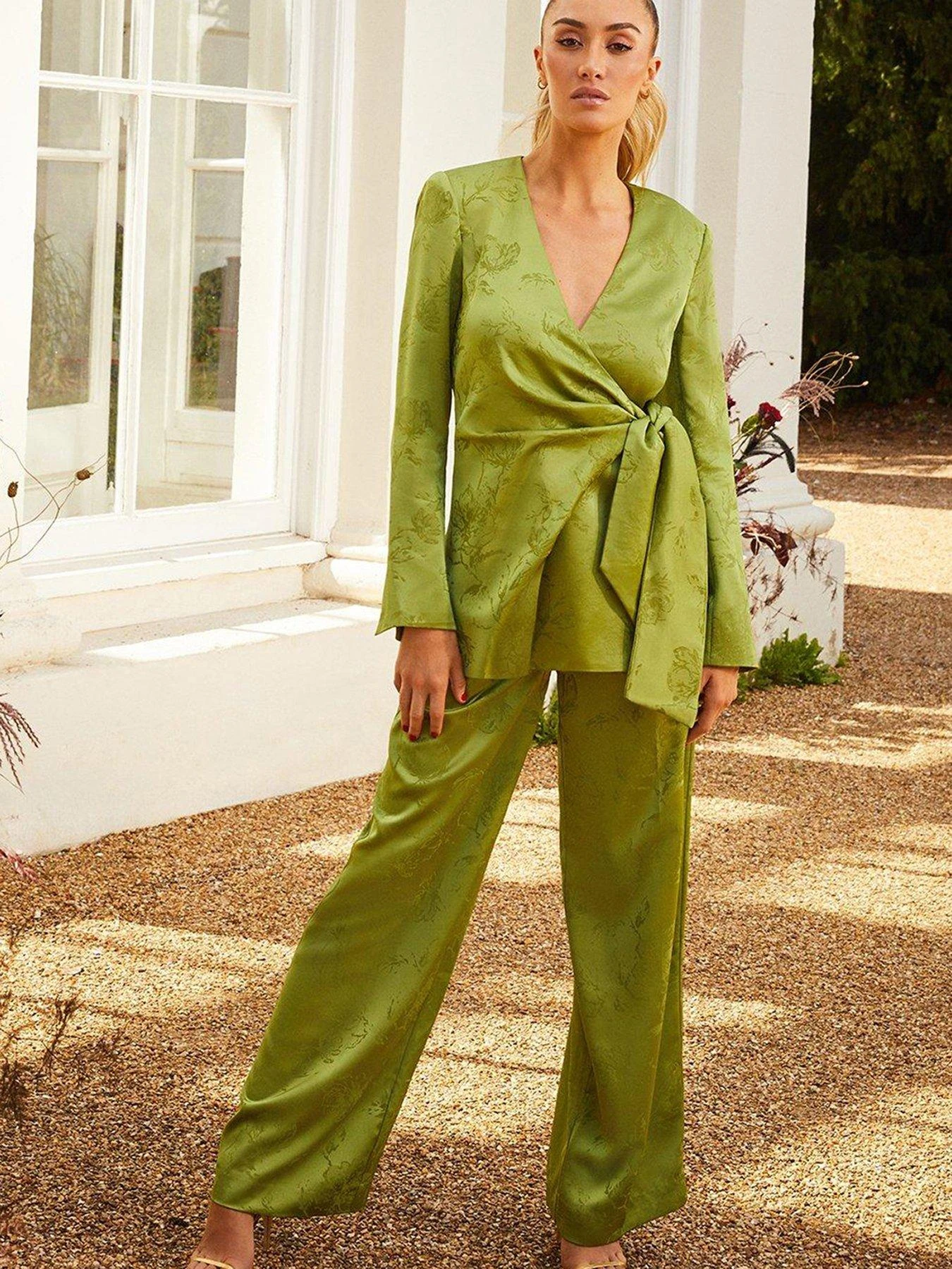 COAST Sophie Habboo Satin Jacquard Wide Leg Trouser – Olive