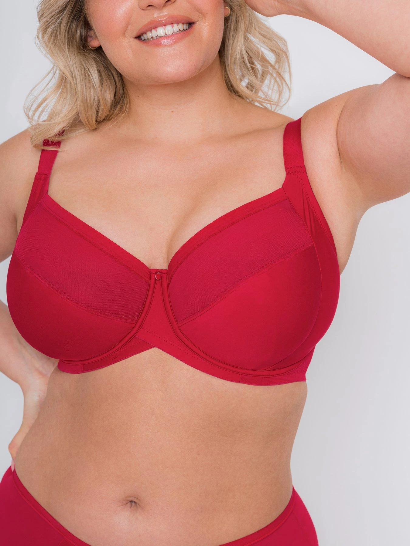 4-part full cup balcony bra with curved underband to reduce roll and discomfort