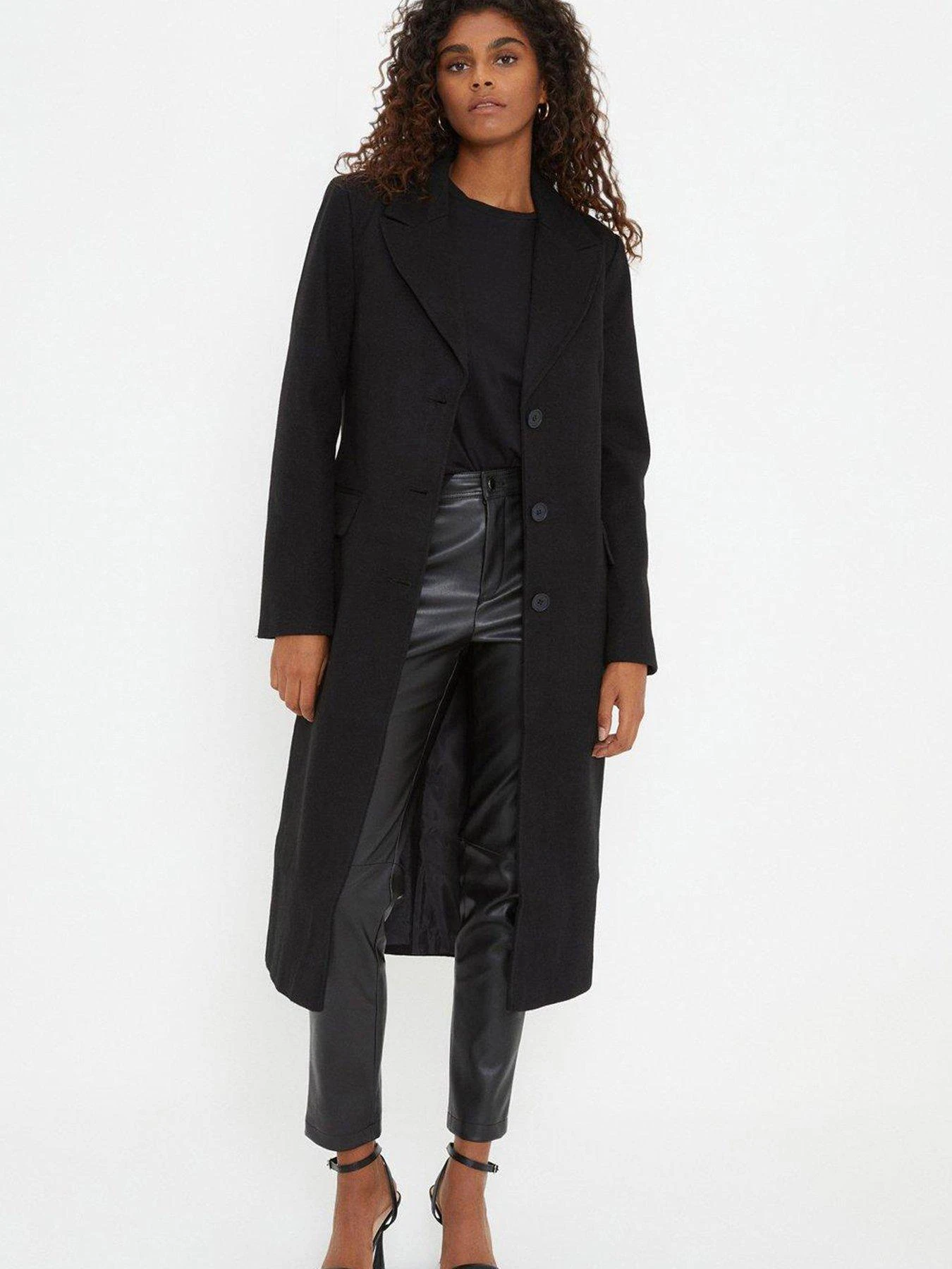 Dorothy Perkins Single Breasted Maxi Coat – Black