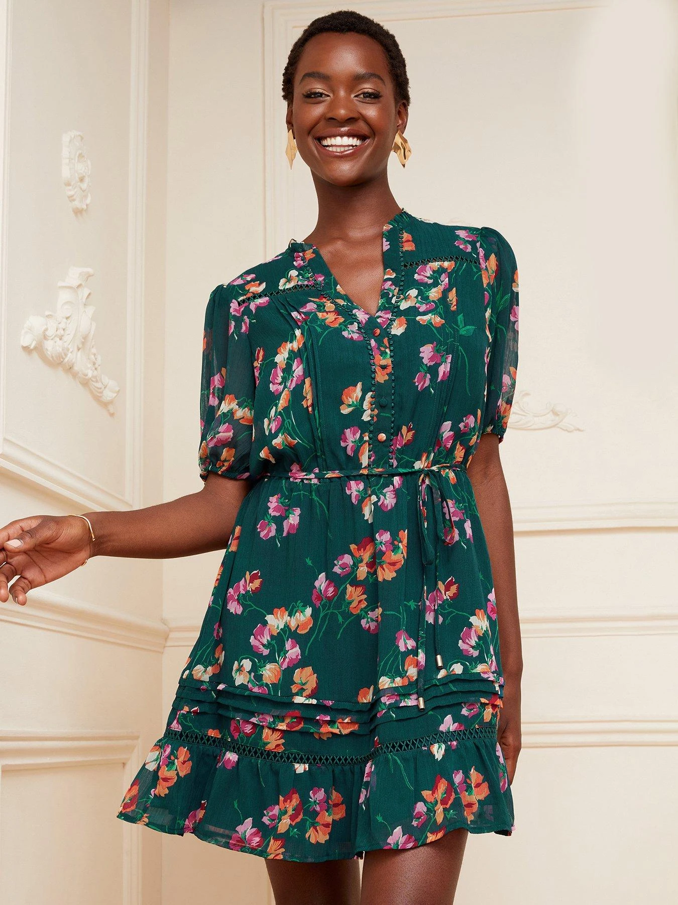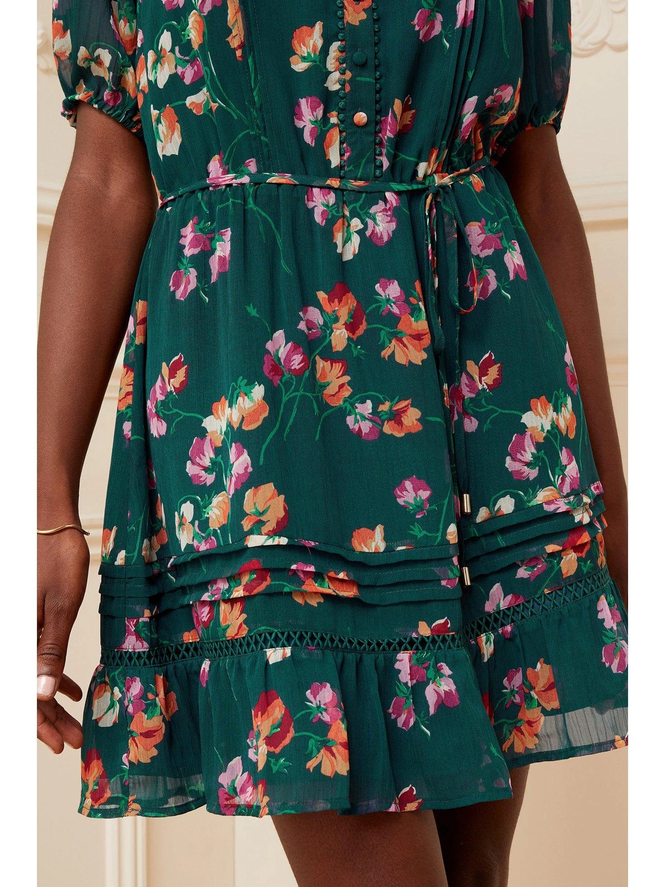 Love & Roses Printed Lace Mini Dress – Teal