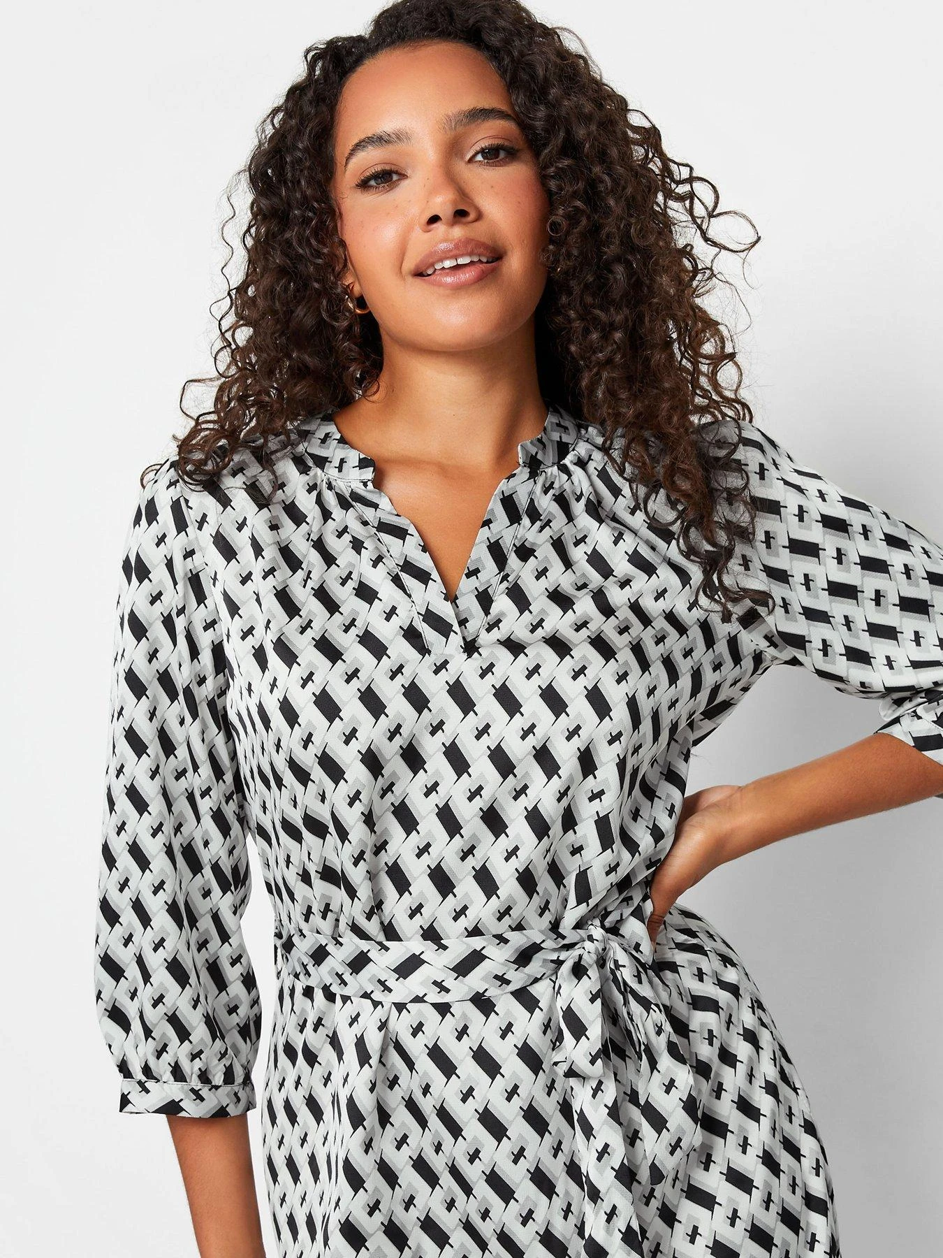 M&Co Satin Square Geo Tie Detail Tunic Shirt