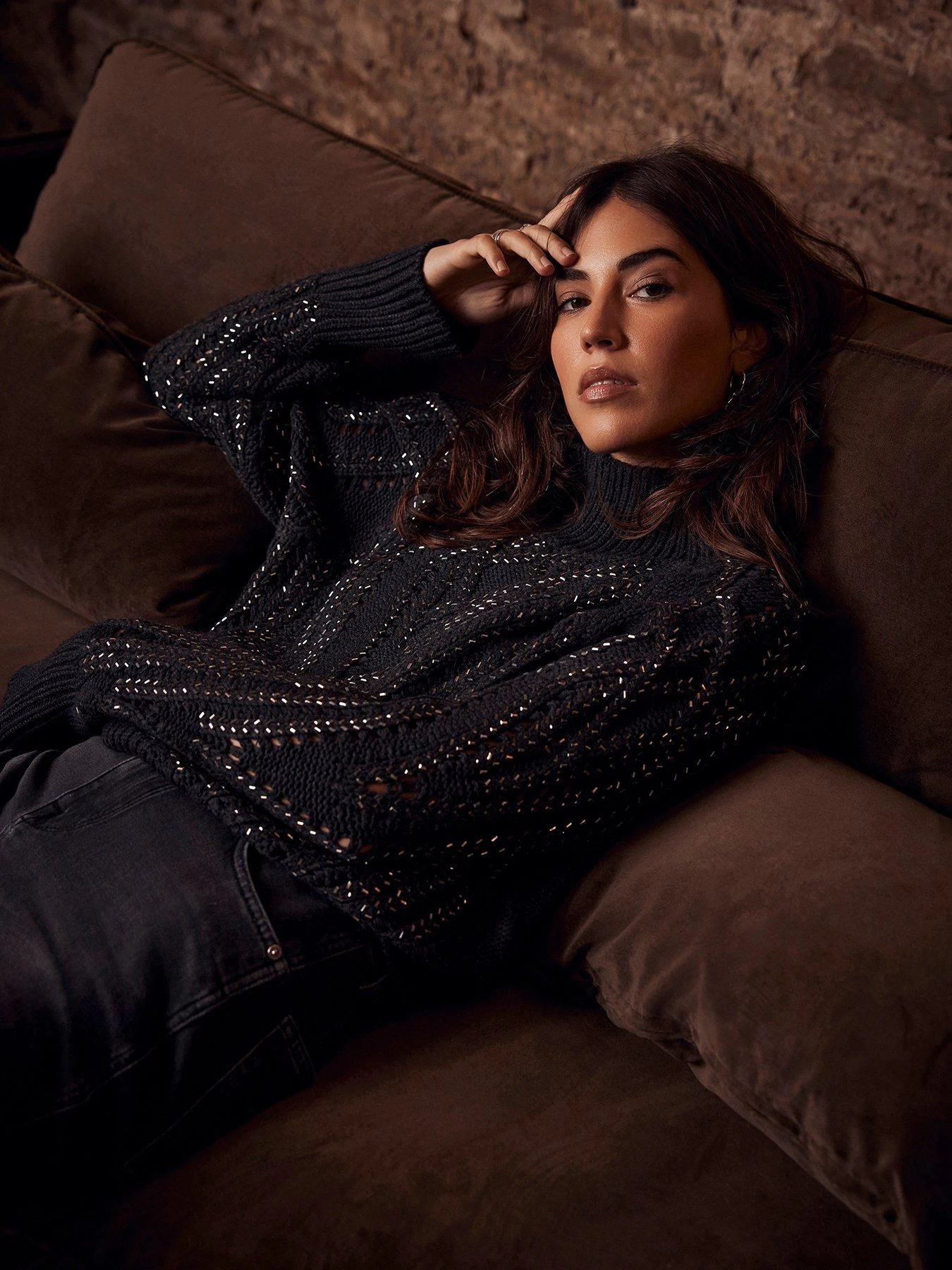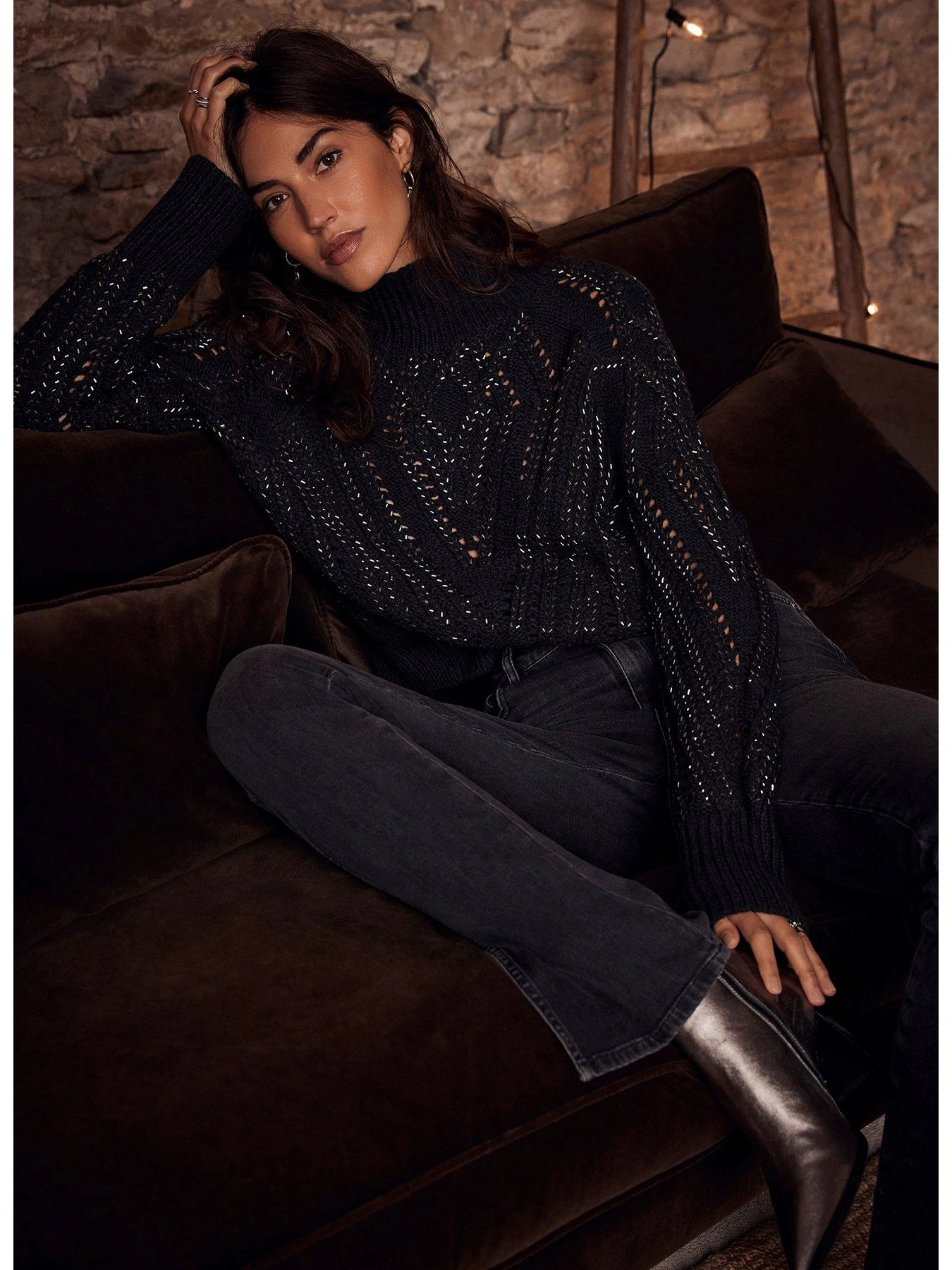 Mint Velvet Charcoal Diamante Hotfix Jumper