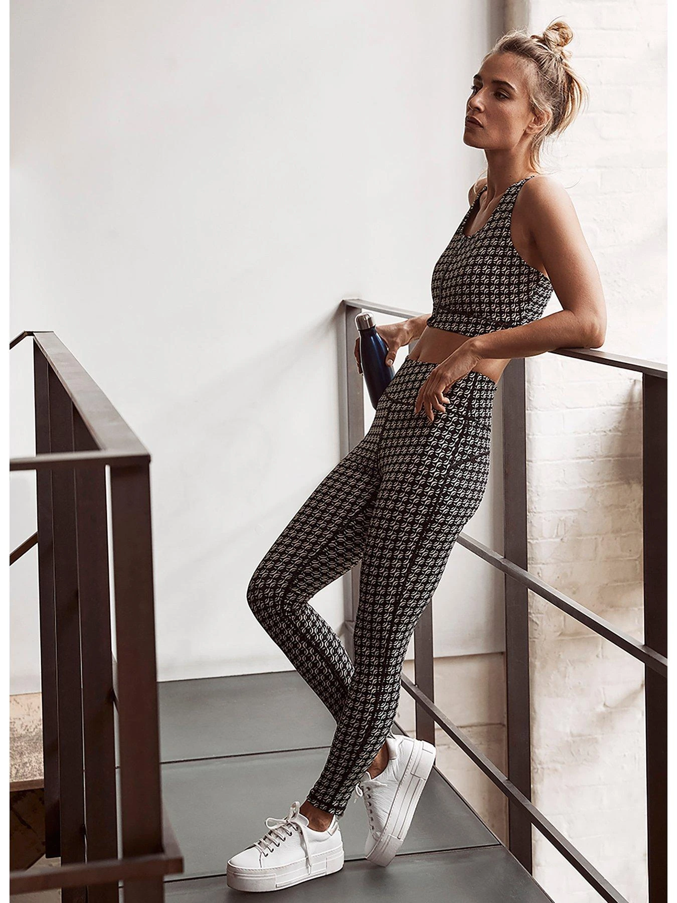 These black leggings are part of our MV Active range – they’re sweat-wicking, breathable, and cut from a sculpting stretch-fabric in our signature high-waisted silhouette. Printed all over with an abstract cream print, these are a perfect pairing for the matching sports bra top. We love ours so much, we’re wearing them everywhere… from yoga studio to farmer’s market.