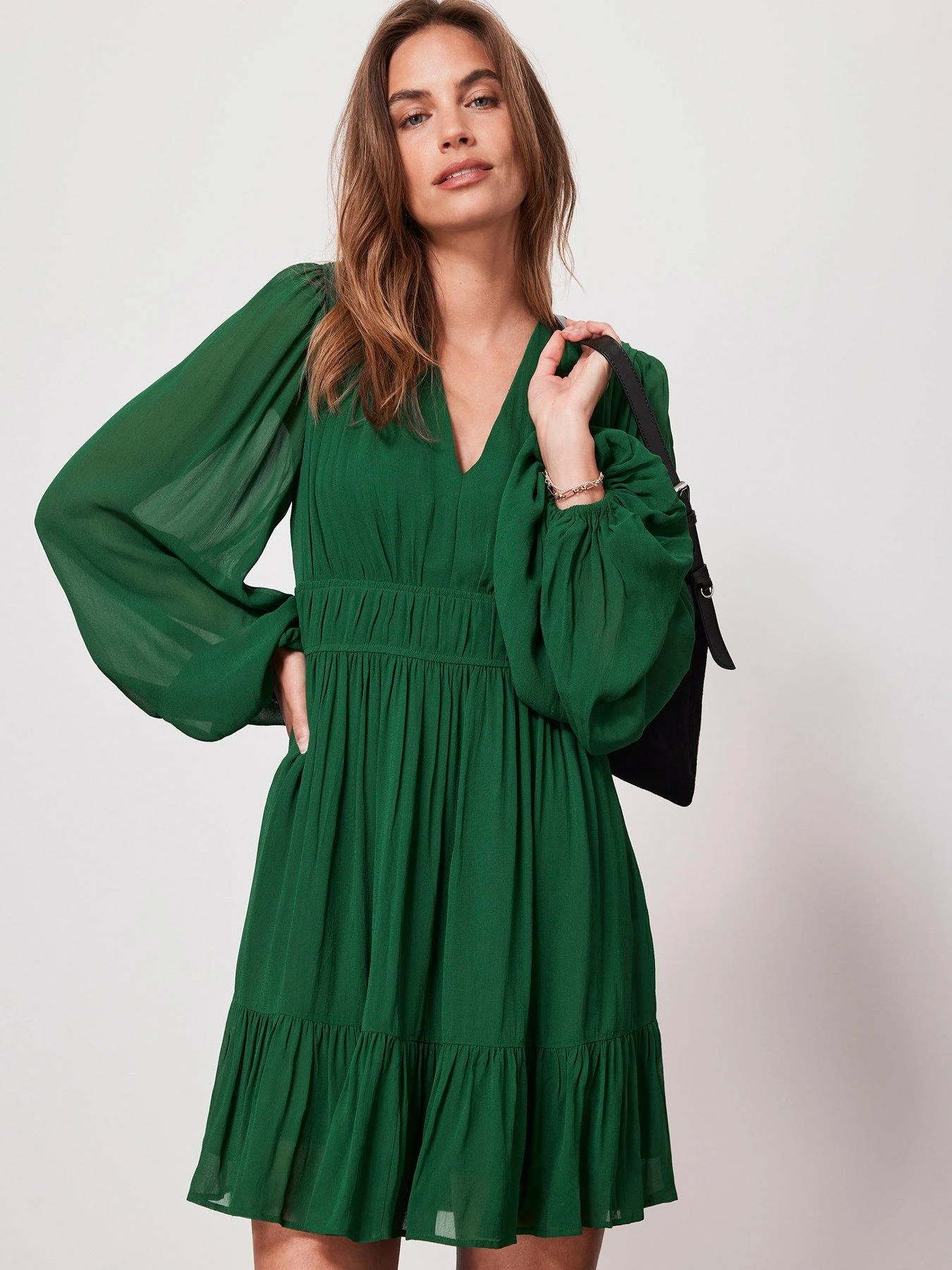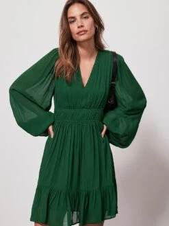 Mint Velvet Green Ruched Waist Mini Dress