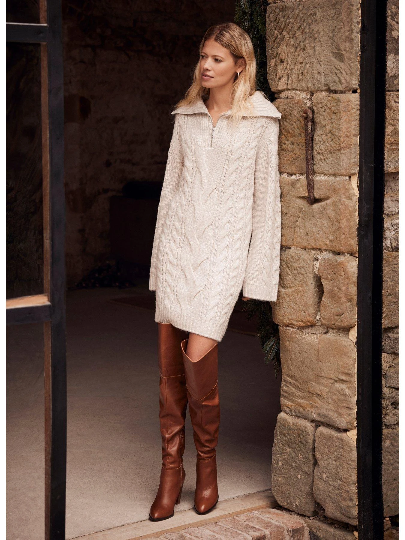 Mint Velvet Neutral Cable Dress
