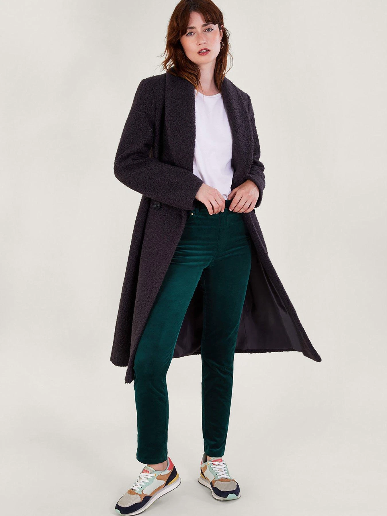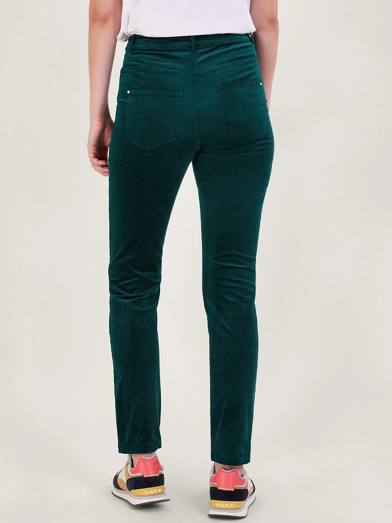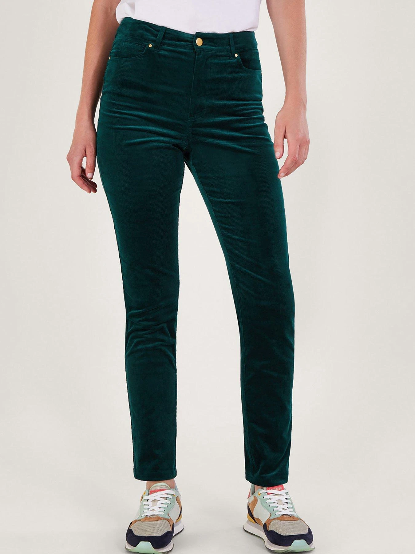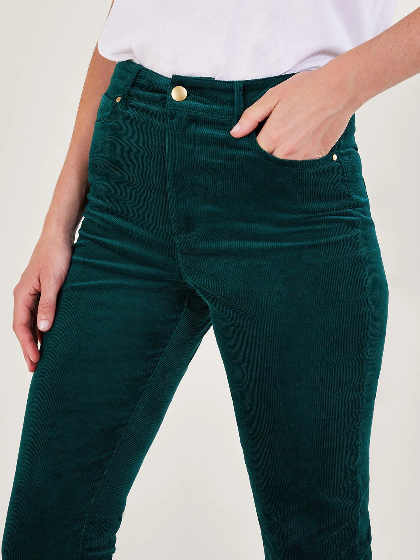 Autumn starter pack. These slim-fitting trousers are designed in pine corduroy with gold metal hardware. Just add your favourite knit. As part of the journey to make our clothes kinder to the world around us, this item was made using more sustainable raw materials, such as organic cotton, recycled polyester and viscose from responsibly grown forests.