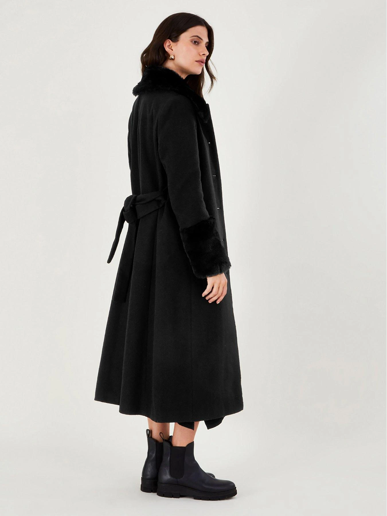 Monsoon Felicity Faux Fur Trim Belted Wool Coat