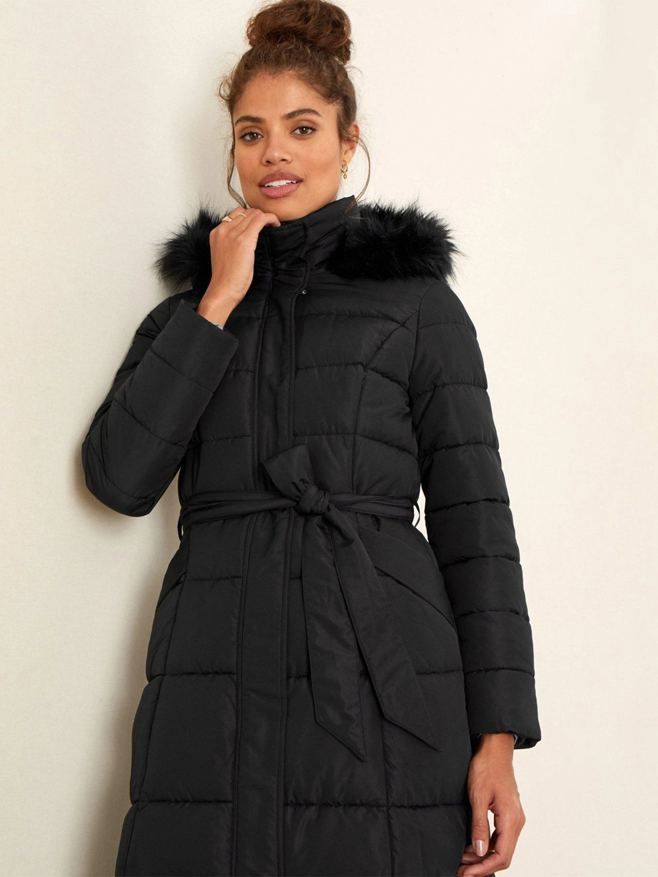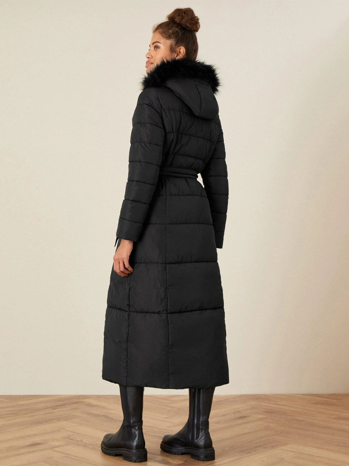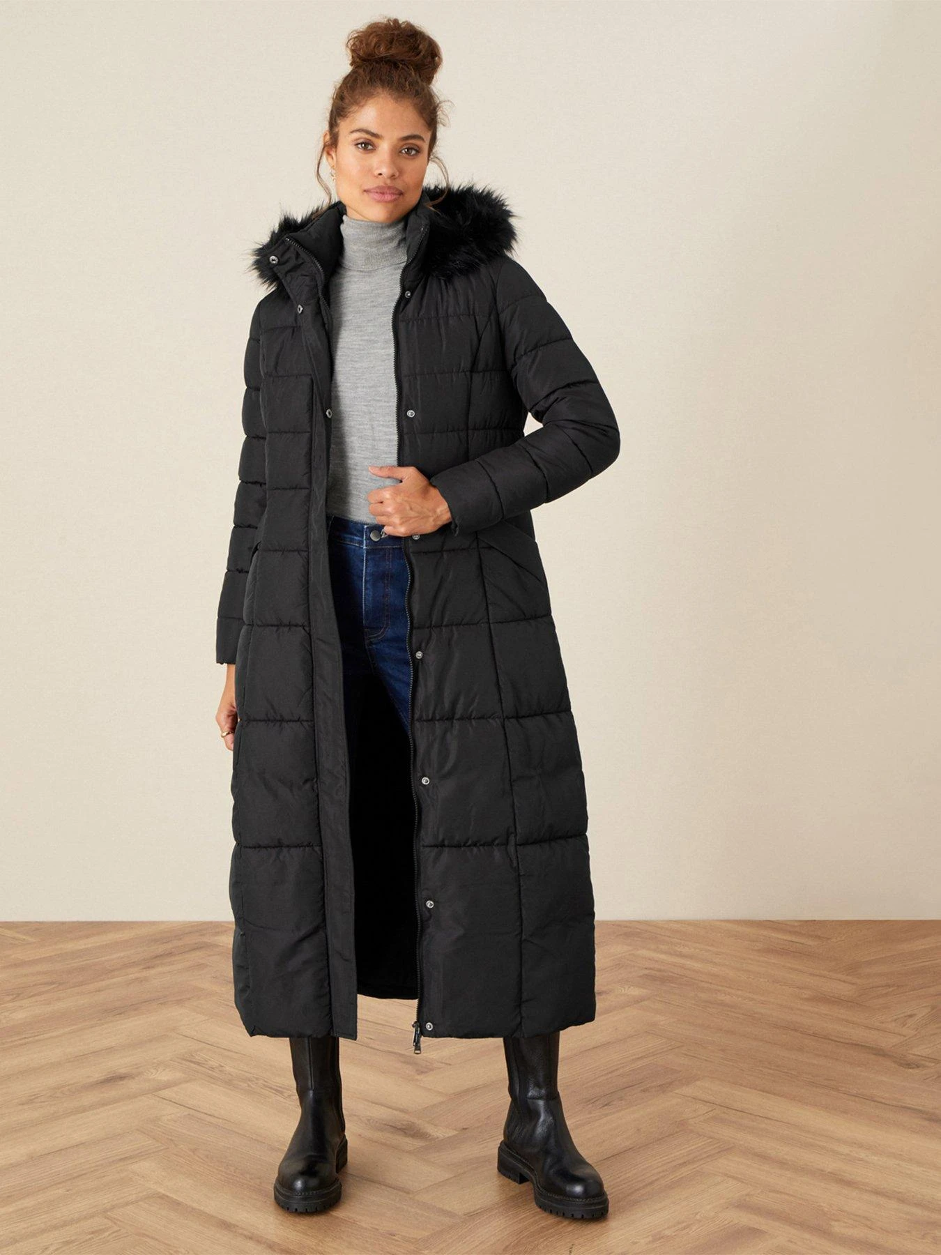 Monsoon Morgan Maxi Fur Hood Padded – Black