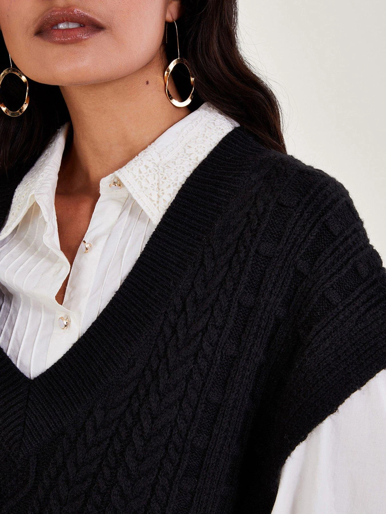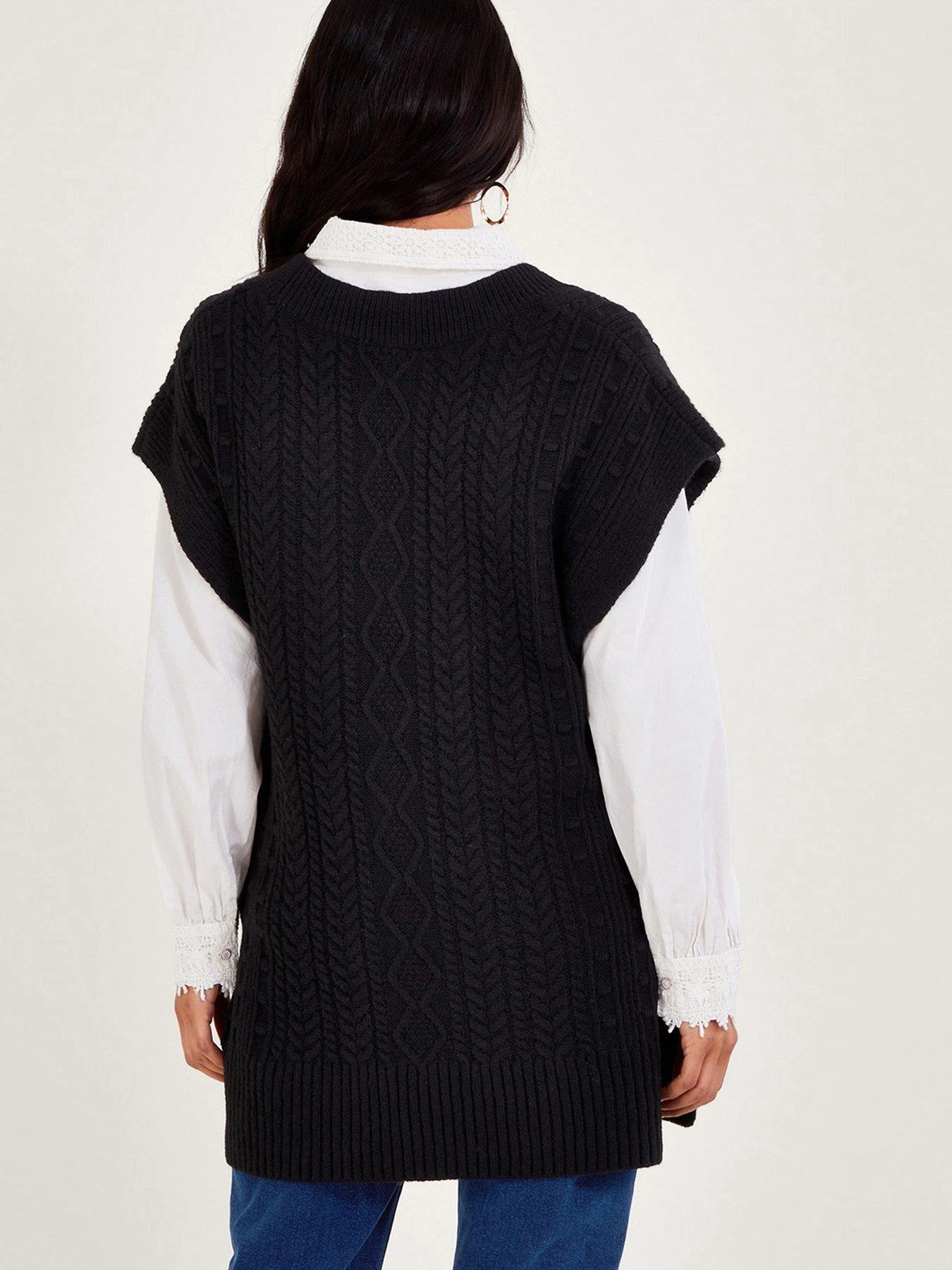 No regrets. It’s an all-year thing. Thanks to the sleeveless silhouette and loose fit, this tabbard is as suitable for spring mornings as it is winter lunch dates ???????????????? and everything in between. It features a mixed knit with a generous v-neckline and buttons on the sides. Just add a collared blouse.