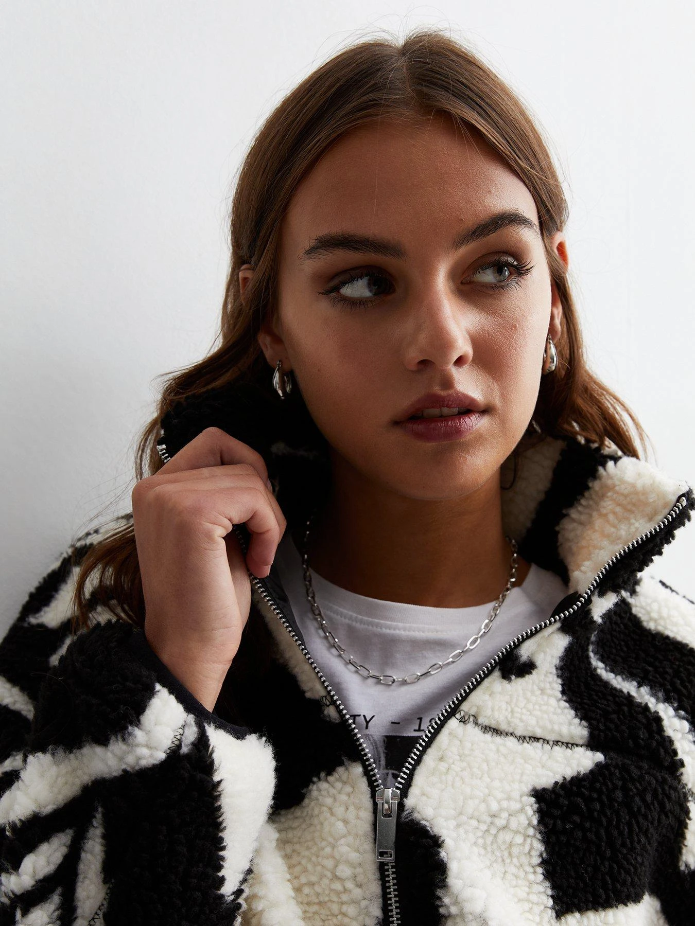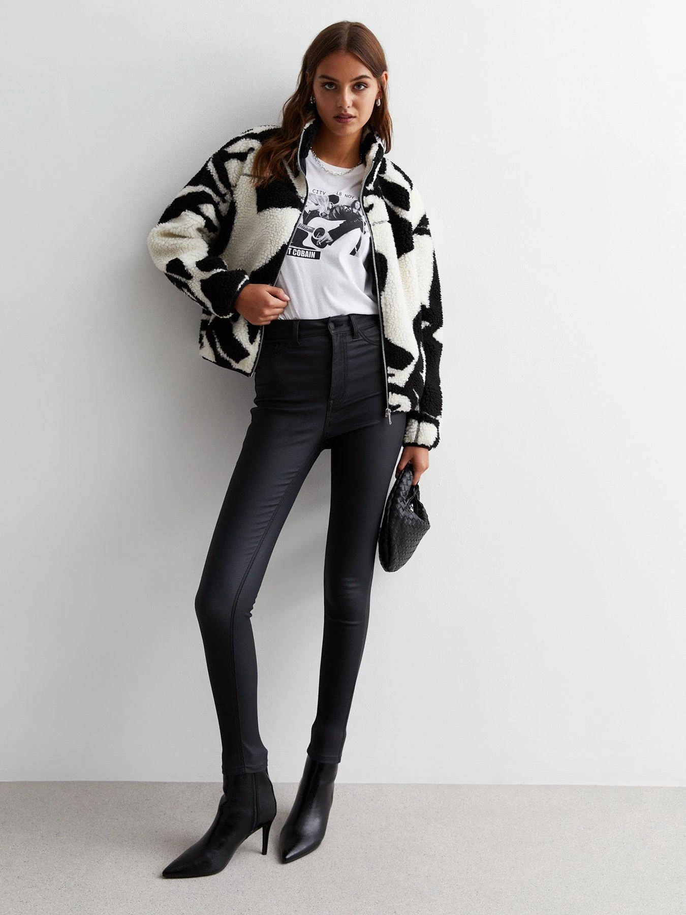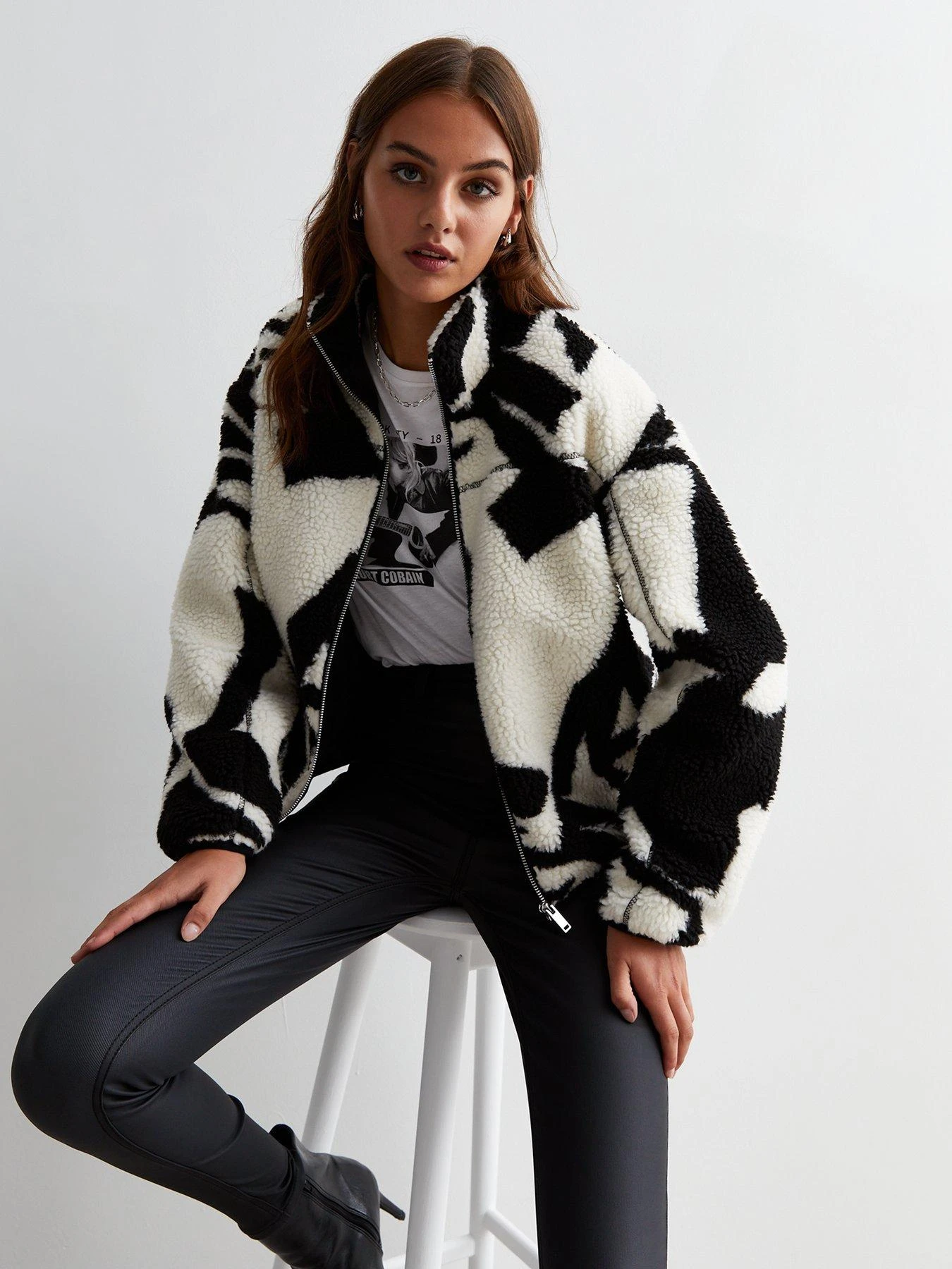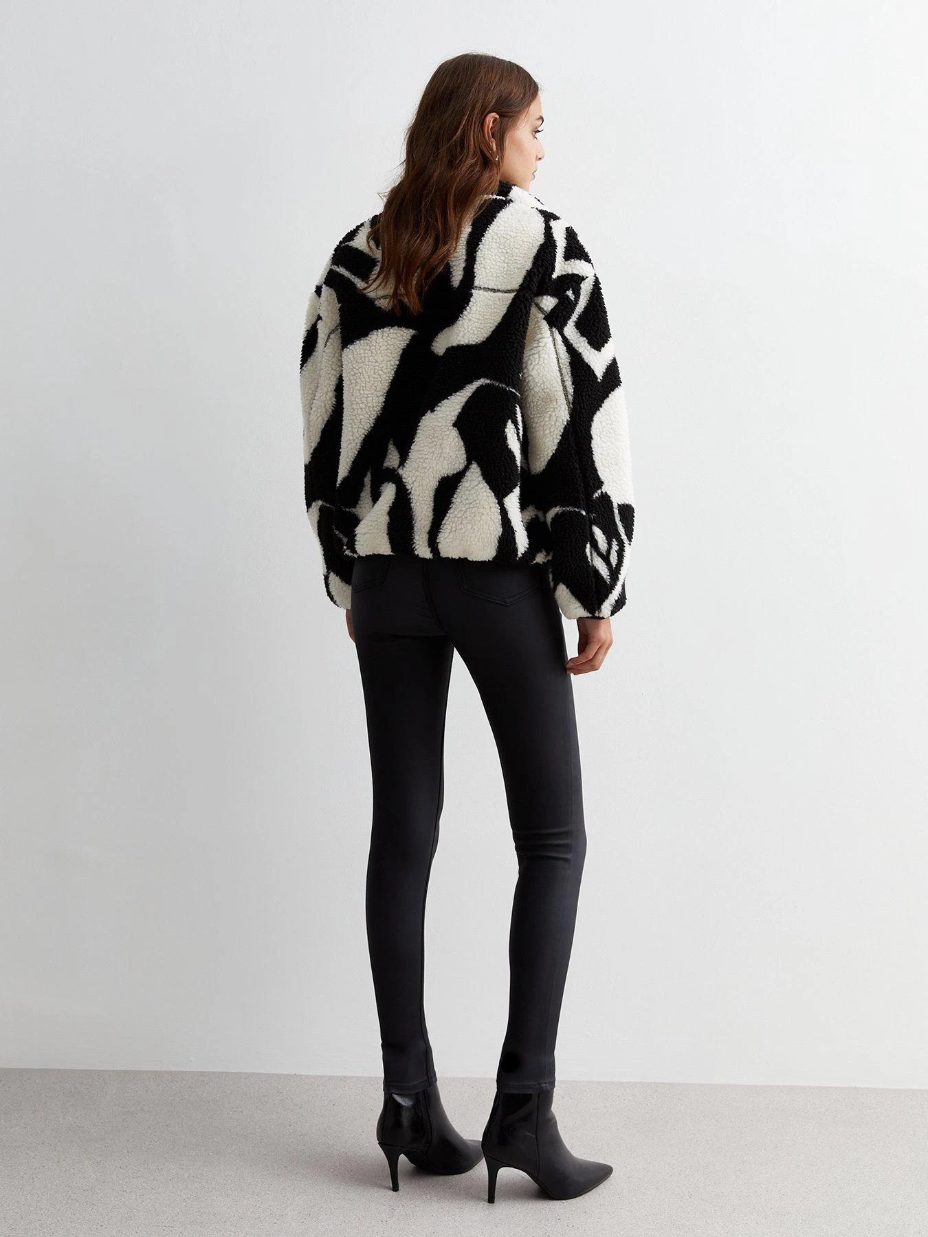 New Look Black Abstract Print Borg Zip Jacket