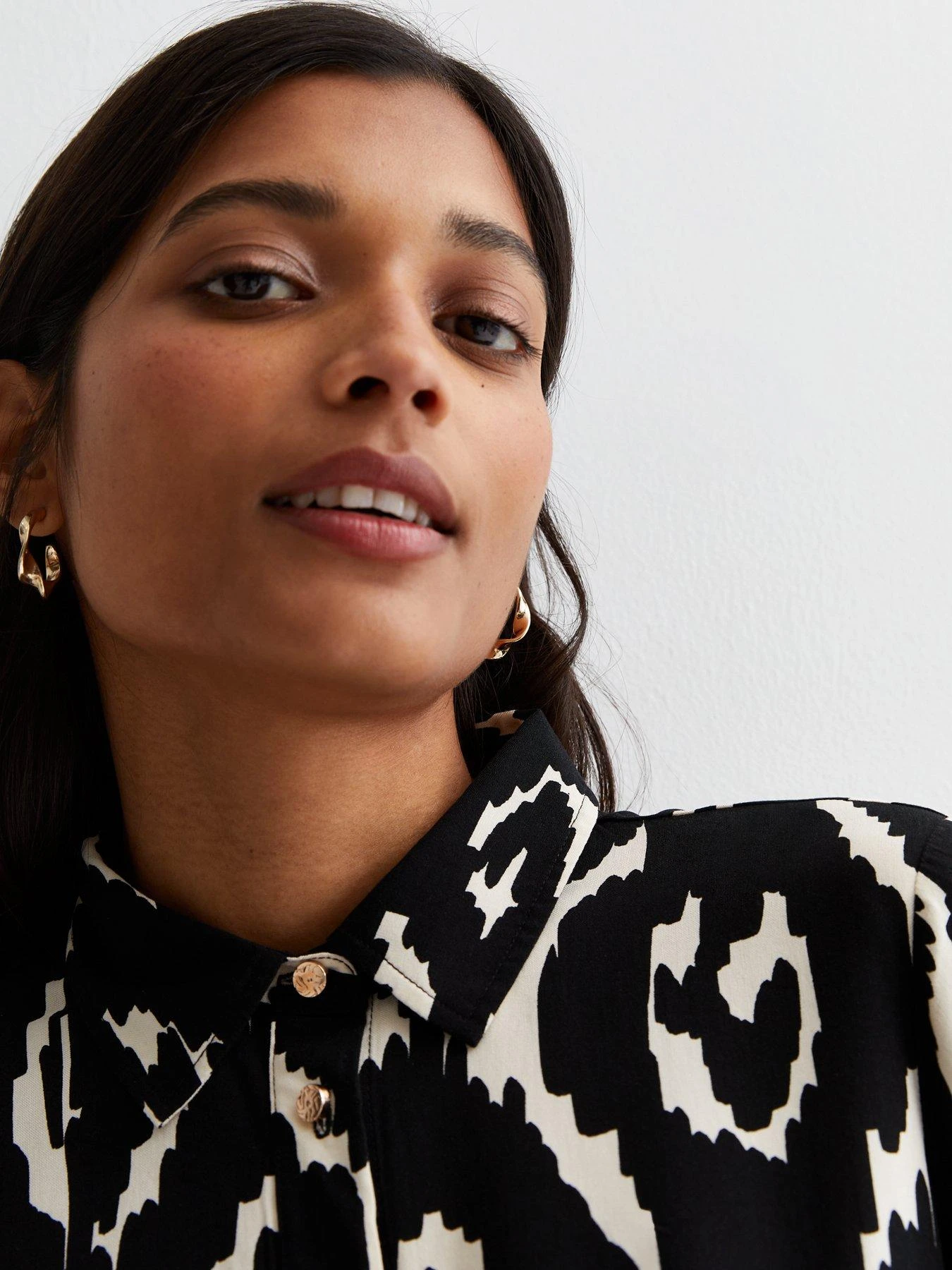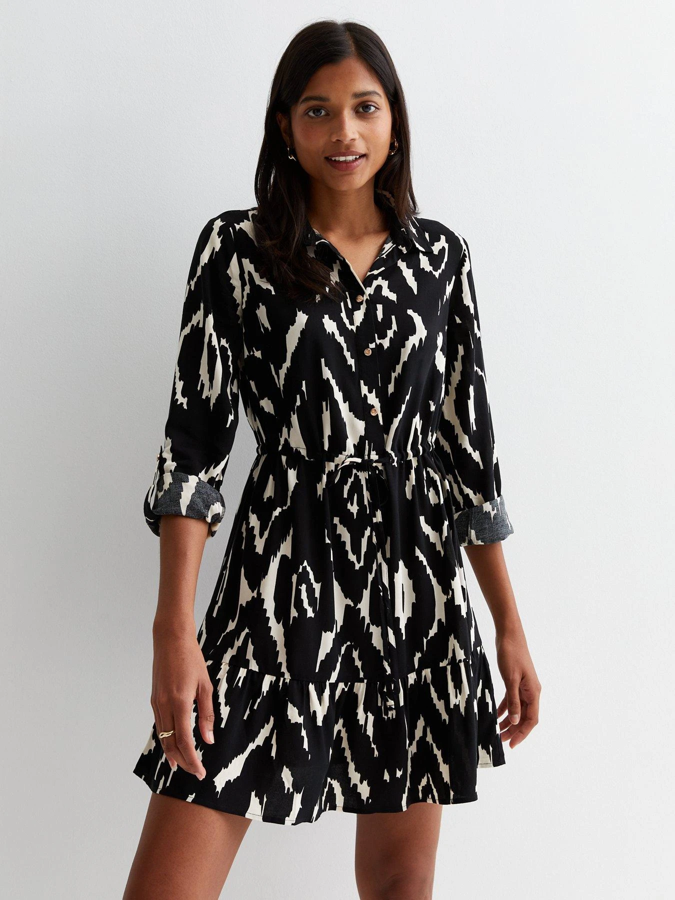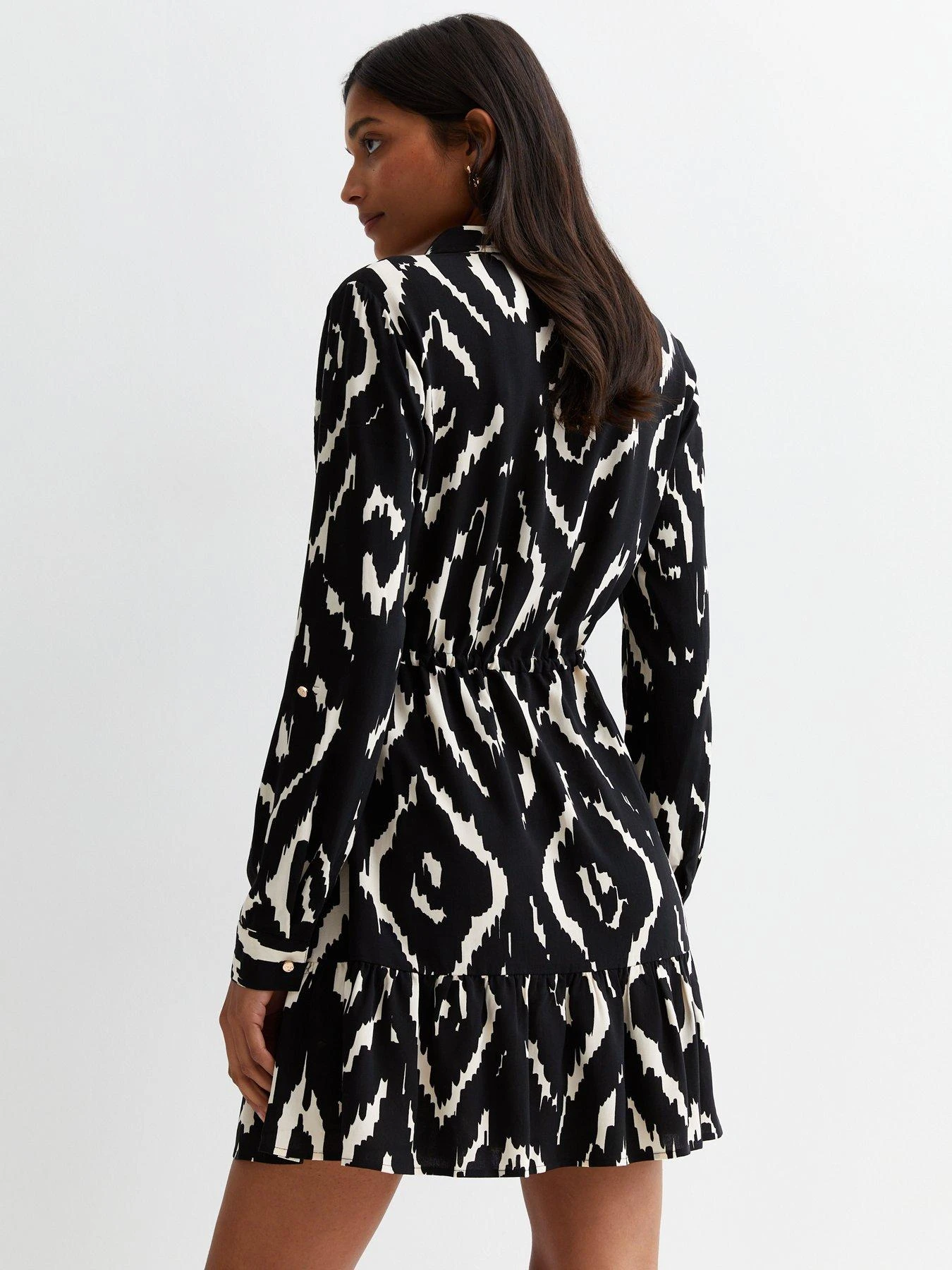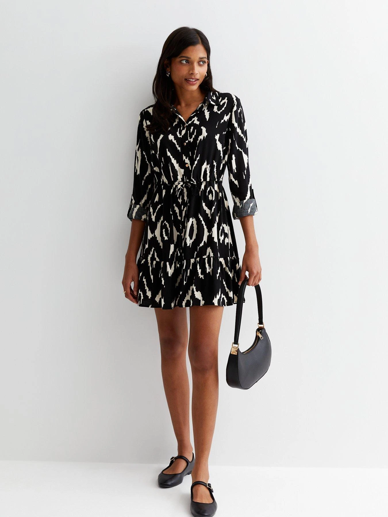 New Look Black Abstract Print Tiered Mini Shirt Dress