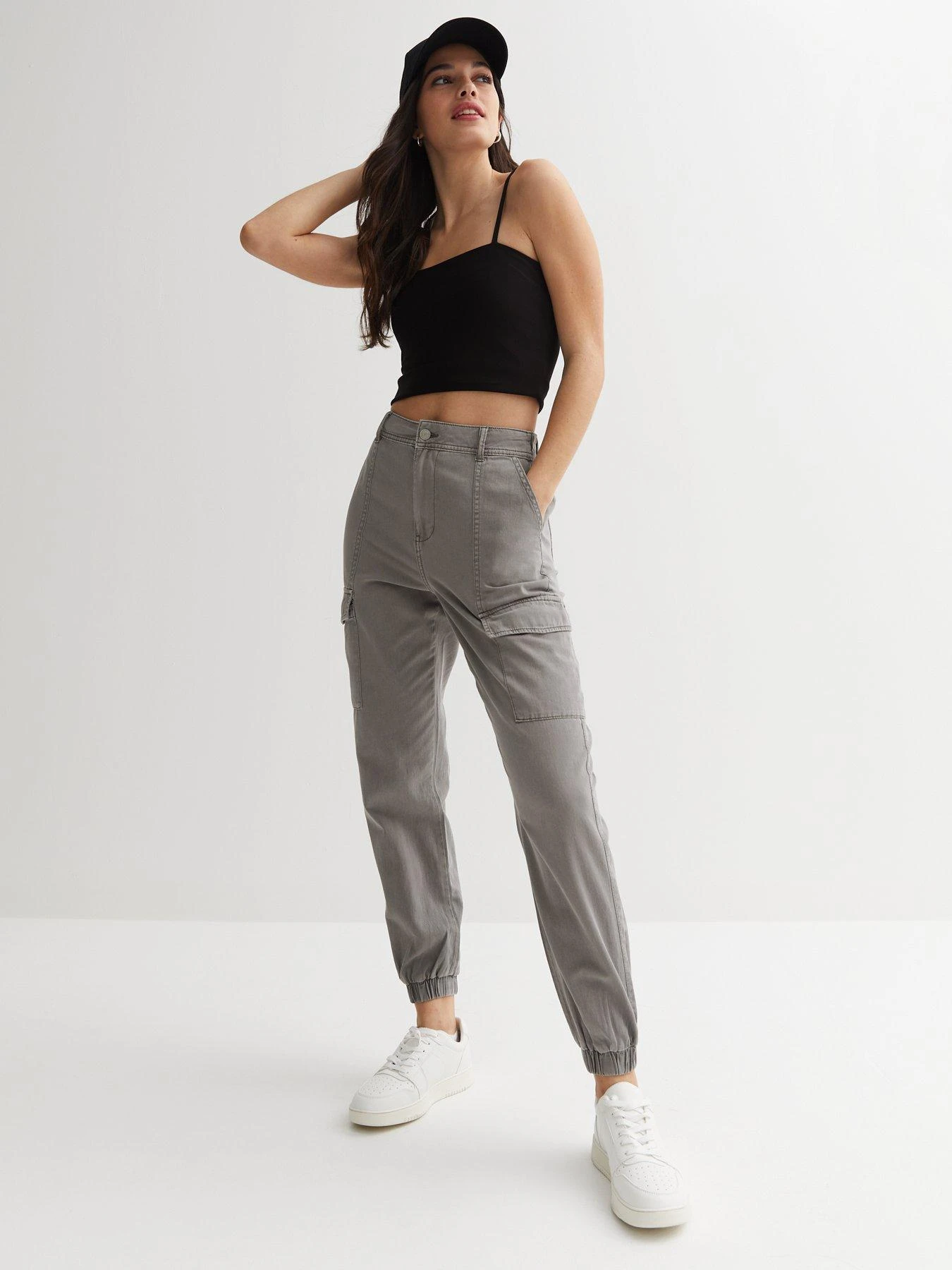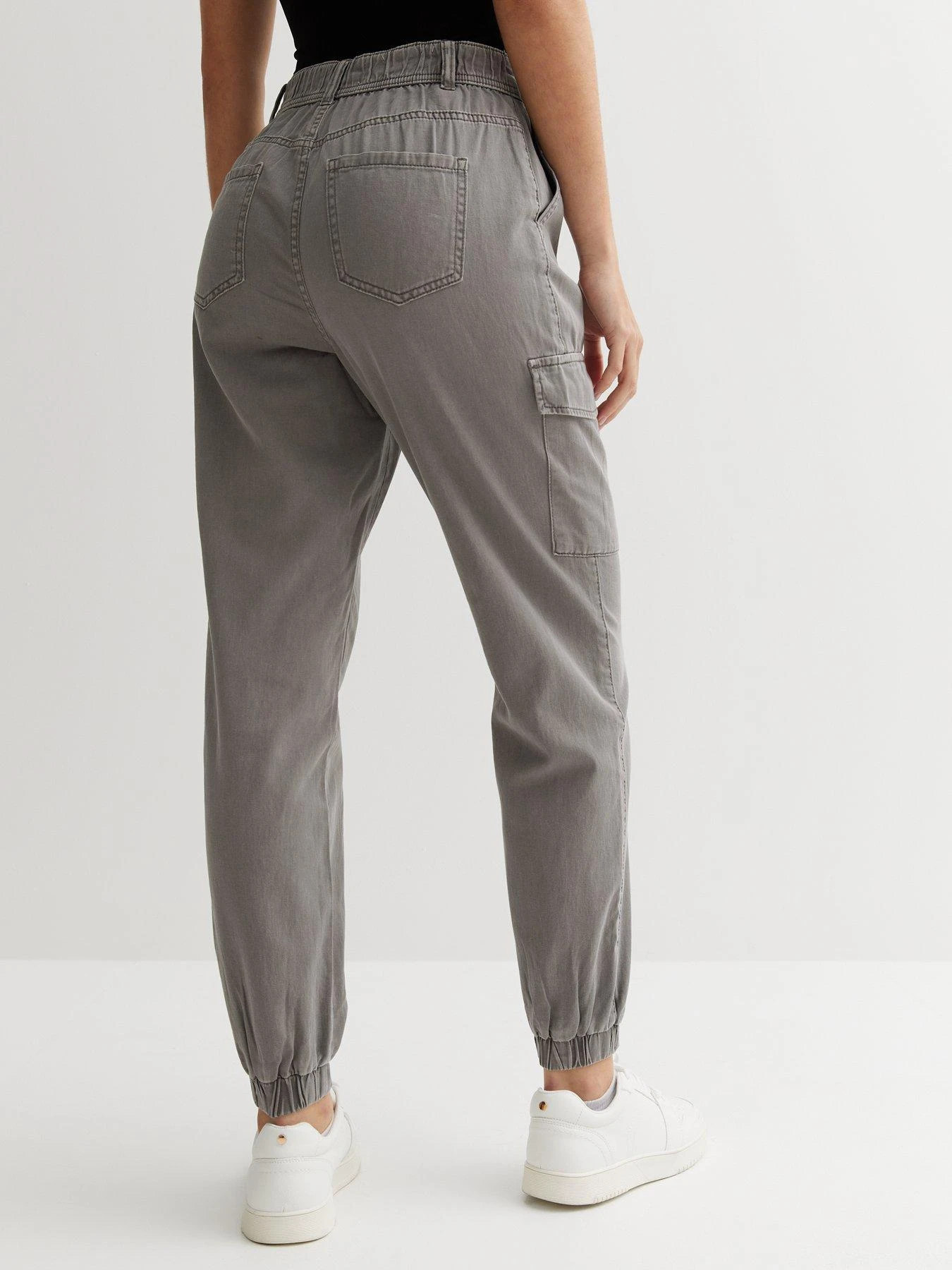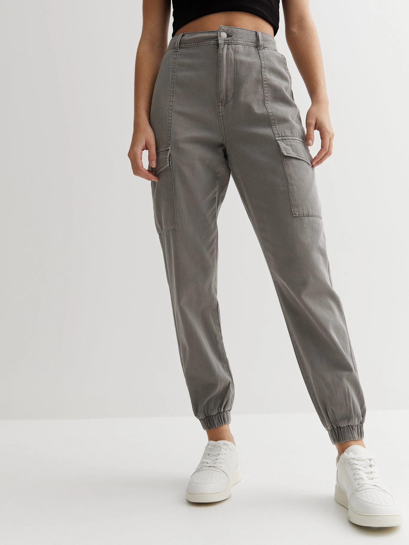 New Look Dark Grey Cotton Cuffed Cargo Trousers