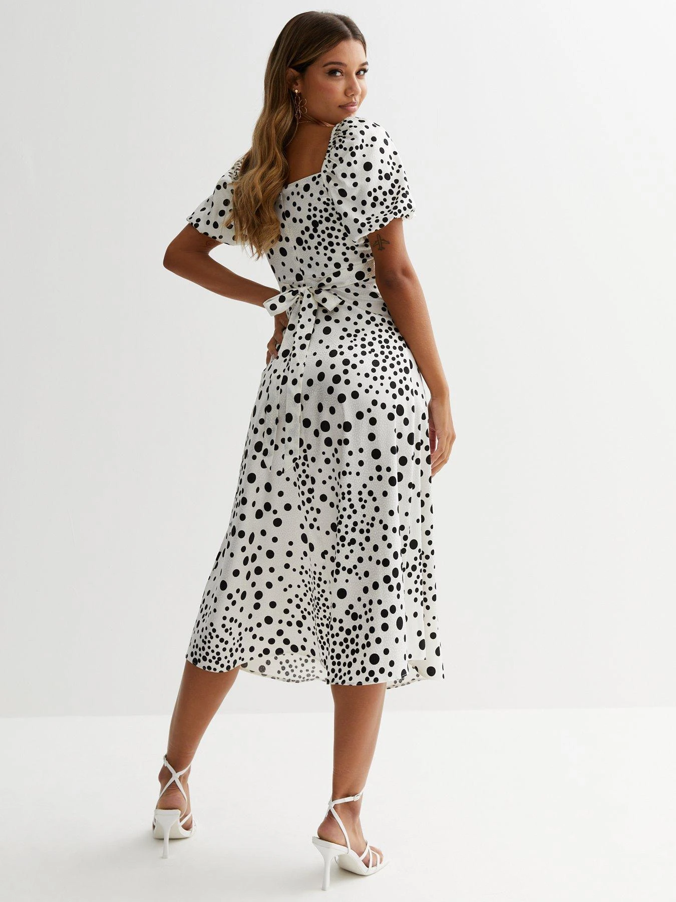 New Look White Spot Satin Twist Front Midi Dress