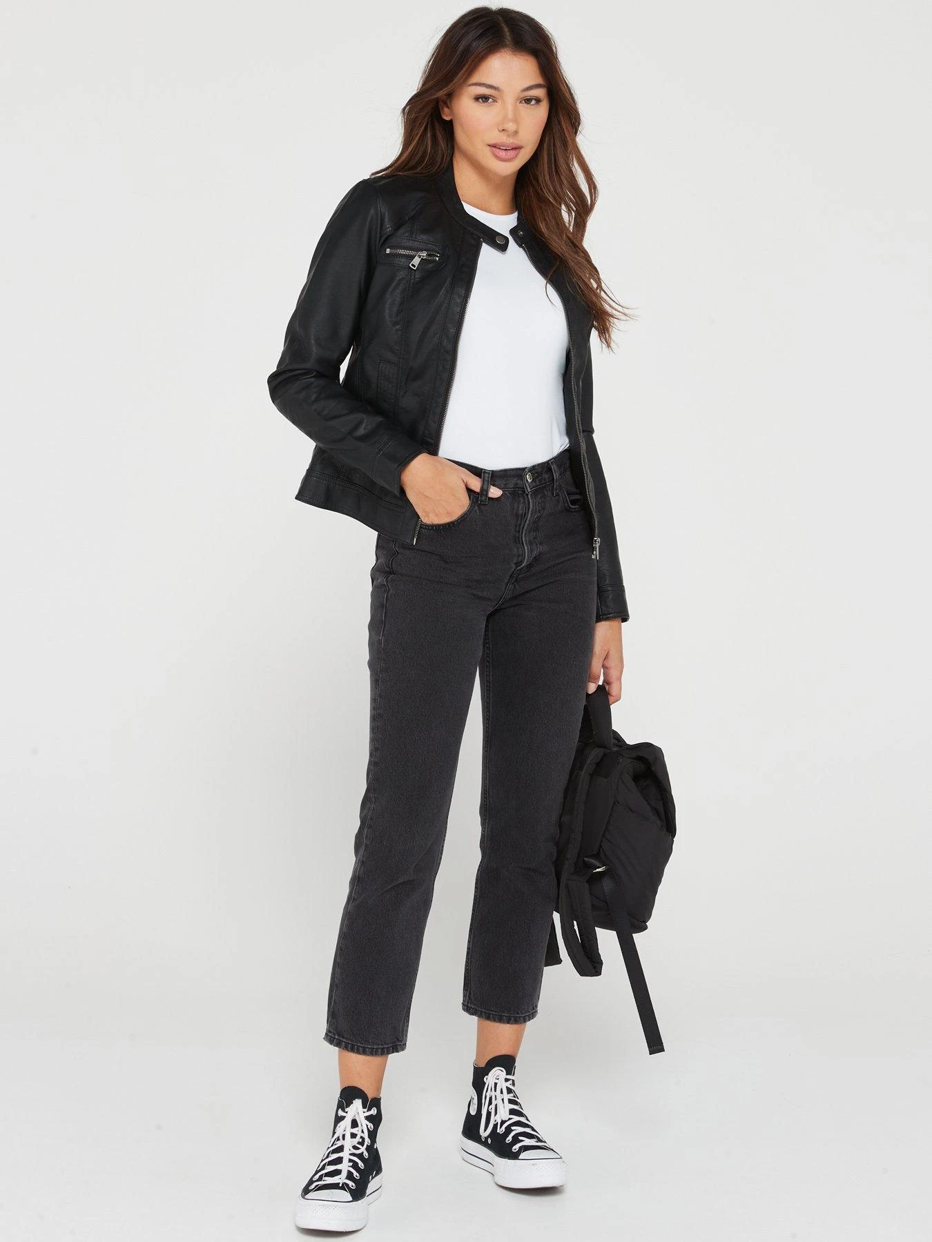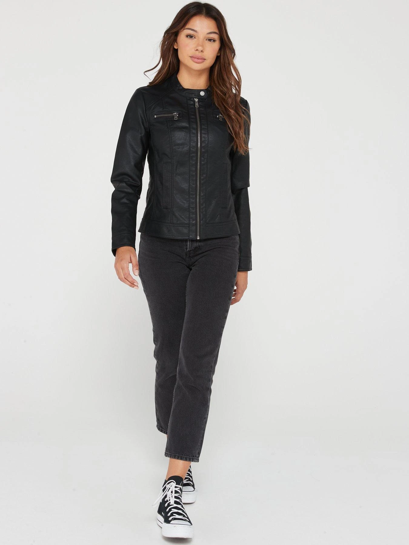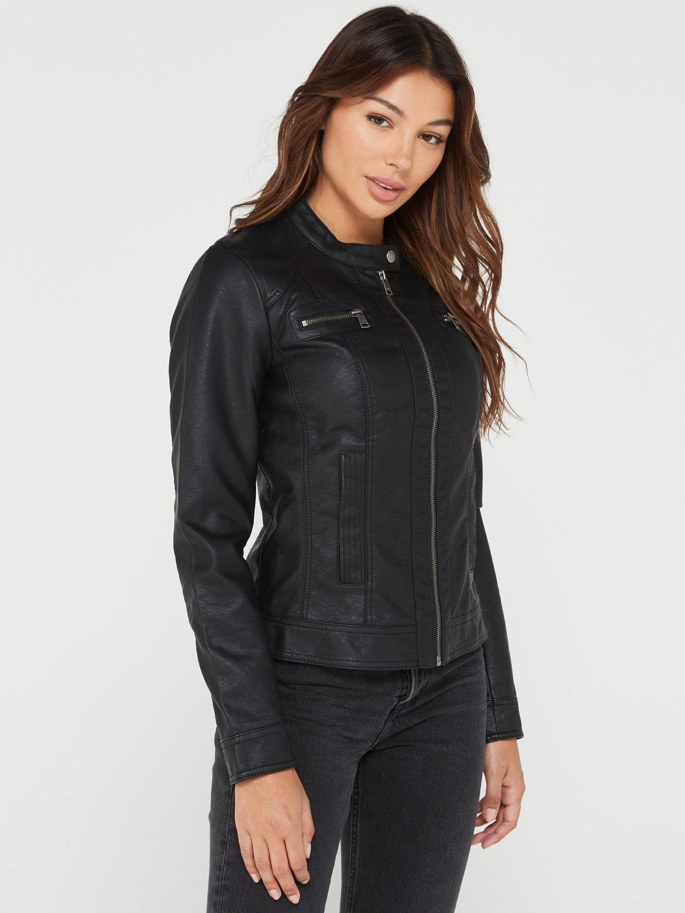 Only Bandit Faux Leather Biker Jacket – Black