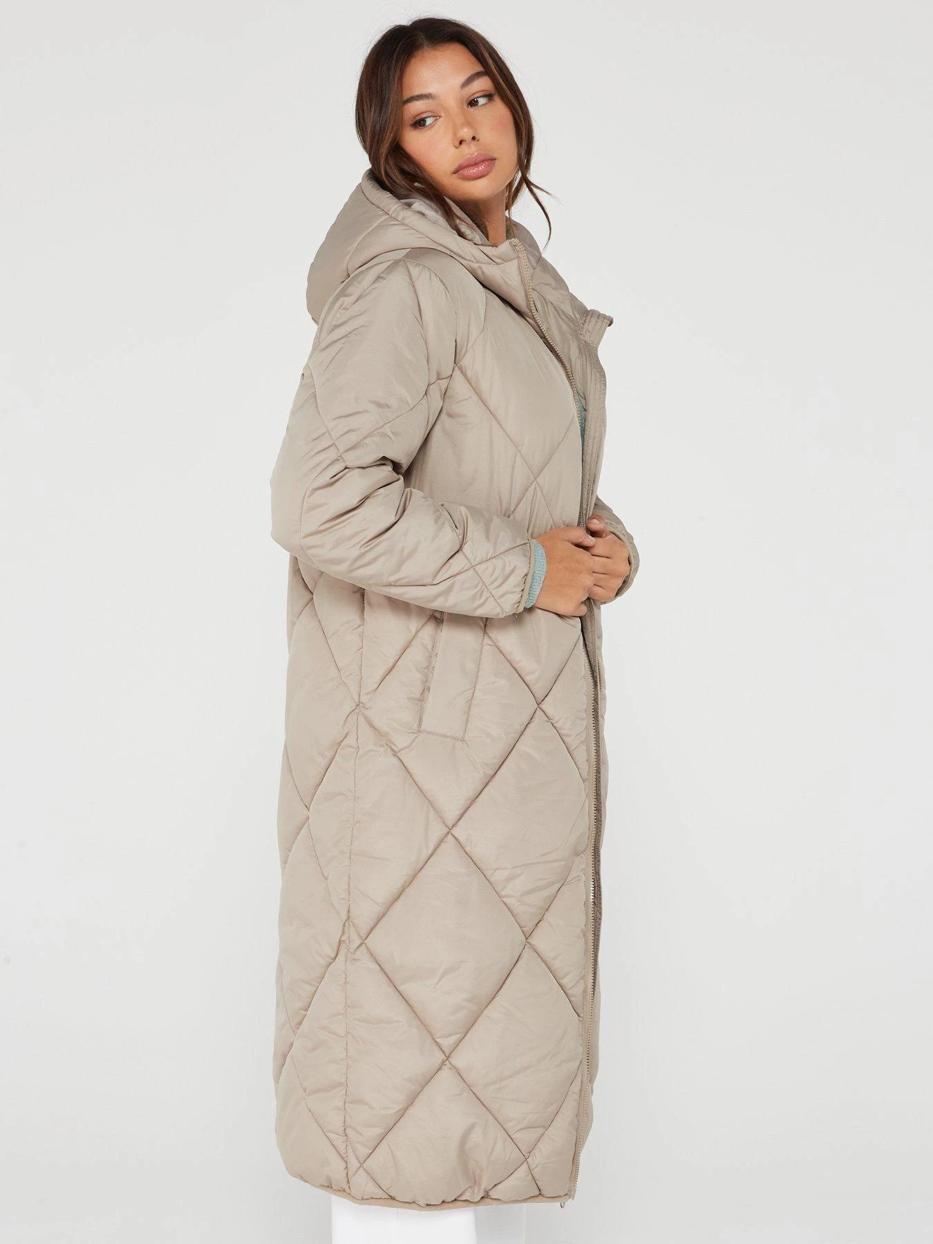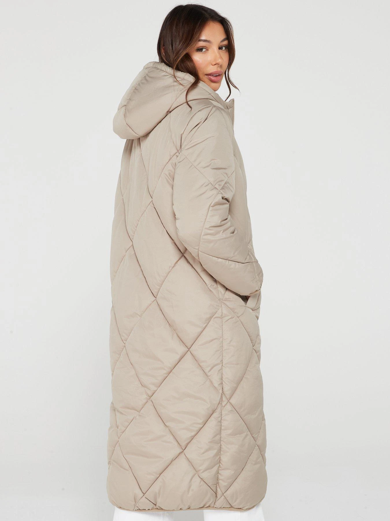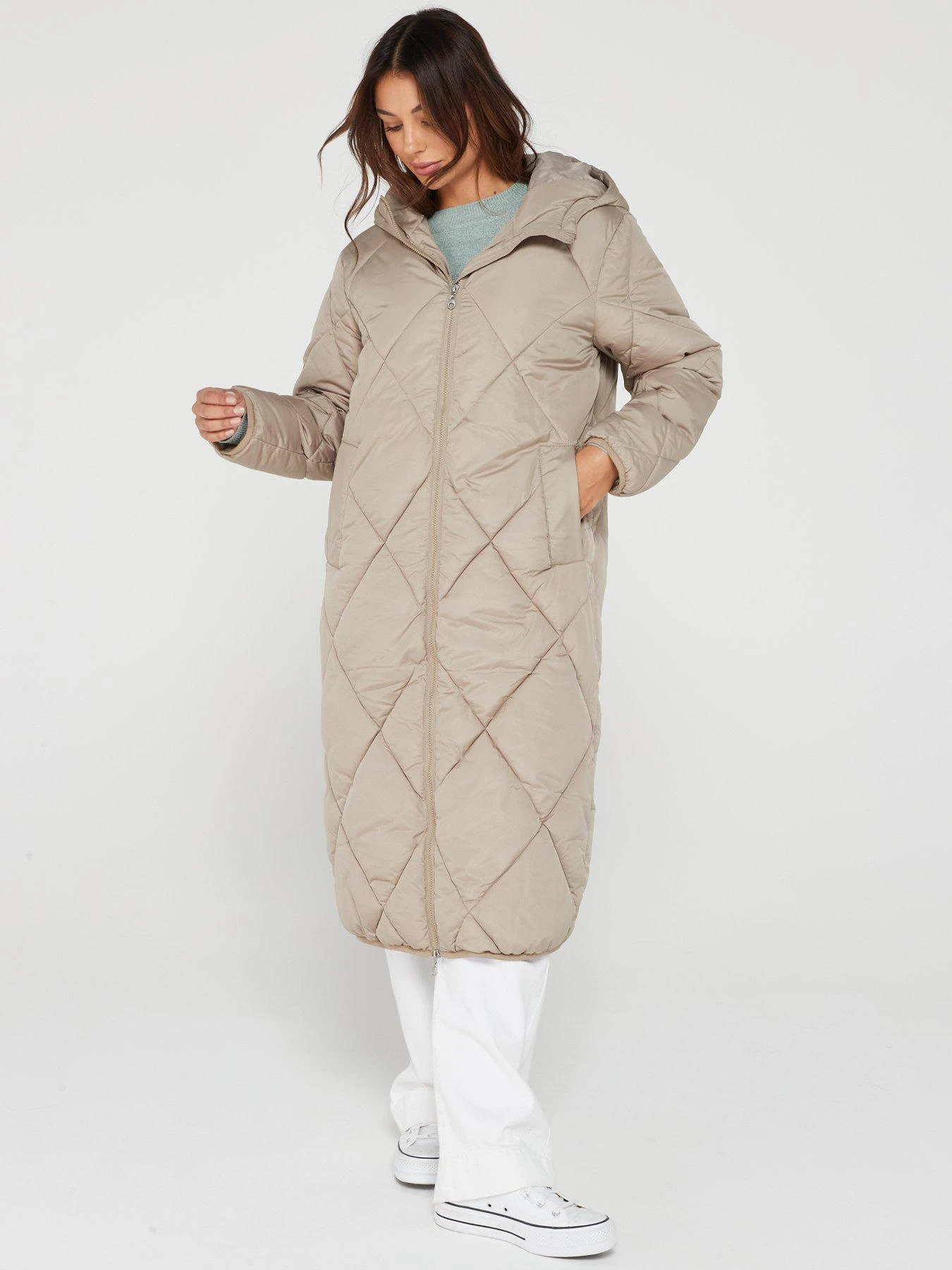 Only New Tamara Long Quilted Coat – Beige