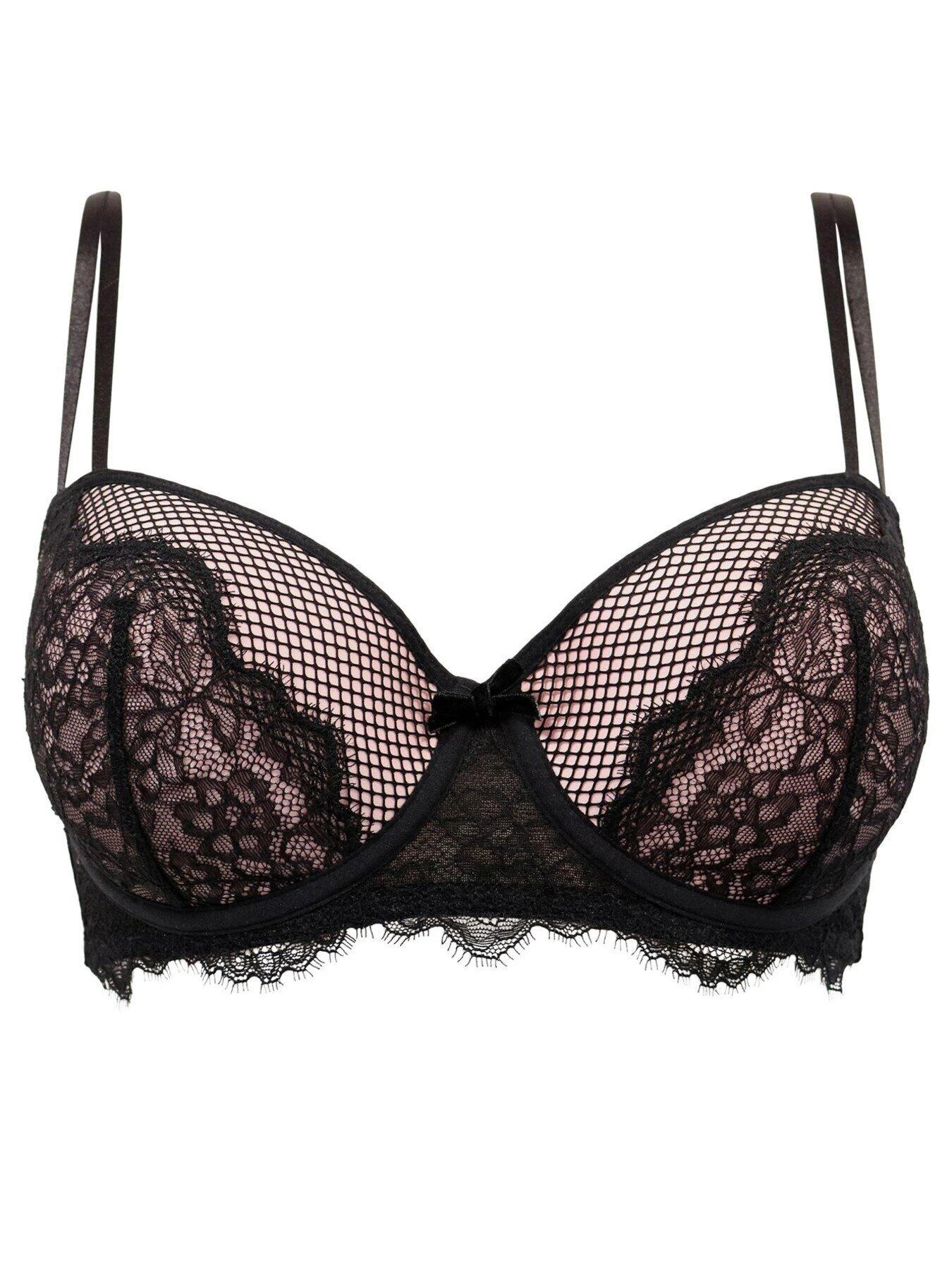 Feel irresistible in this seriously sexy padded underwired bra with caged strap detail. Made with a mix of fishnet and delicate scalloped eyelash lace for a daring and feminine look. Go for a sexy set and pair with matching underwear from the Dark Romance collection for the ultimate romantic look.