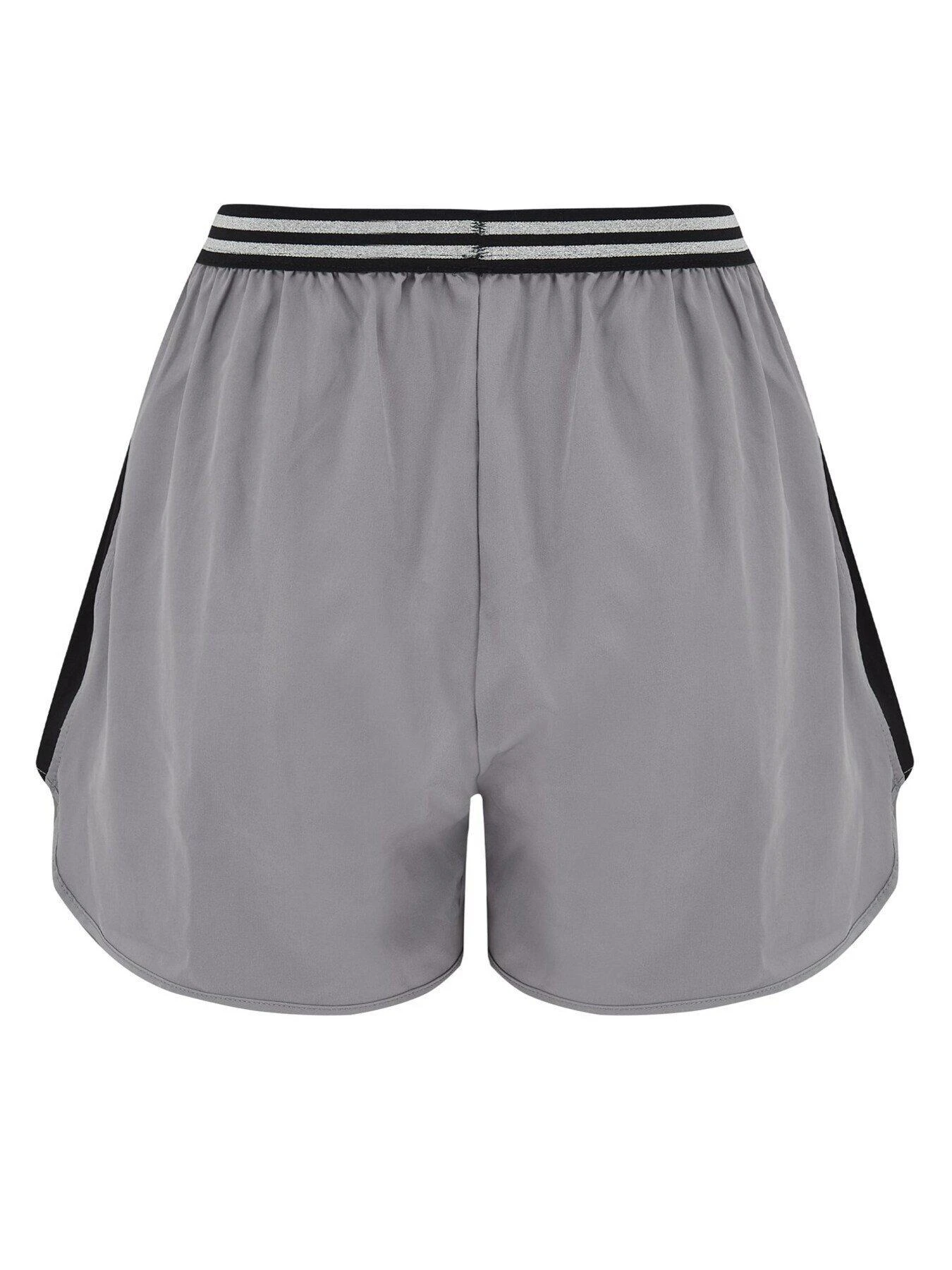 You’ ll love the way you work it in these cute mid-rise workout shorts. Stand out from the in these shorts with contrast side panels. Made from woven material, their casual cut makes them perfect for running, or for keeping cool during hot yoga. Match with a sassy sports bra, fashion-forward tank or the sassy Energy Glam Tie Side Slogan Jersey T-Shirt to nail those athleisure vibes