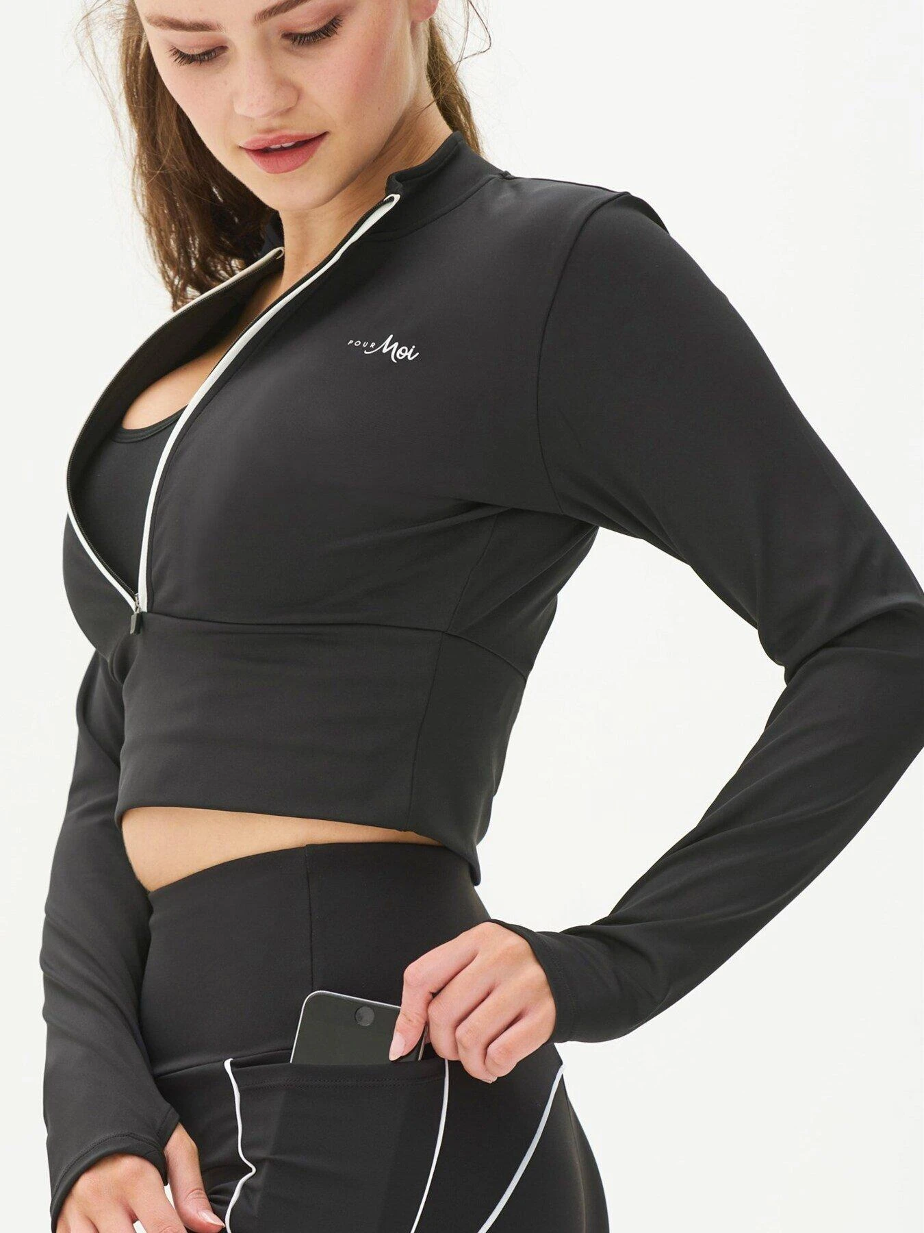 Pour Moi Energy Long Sleeve Half Zip Cropped Top