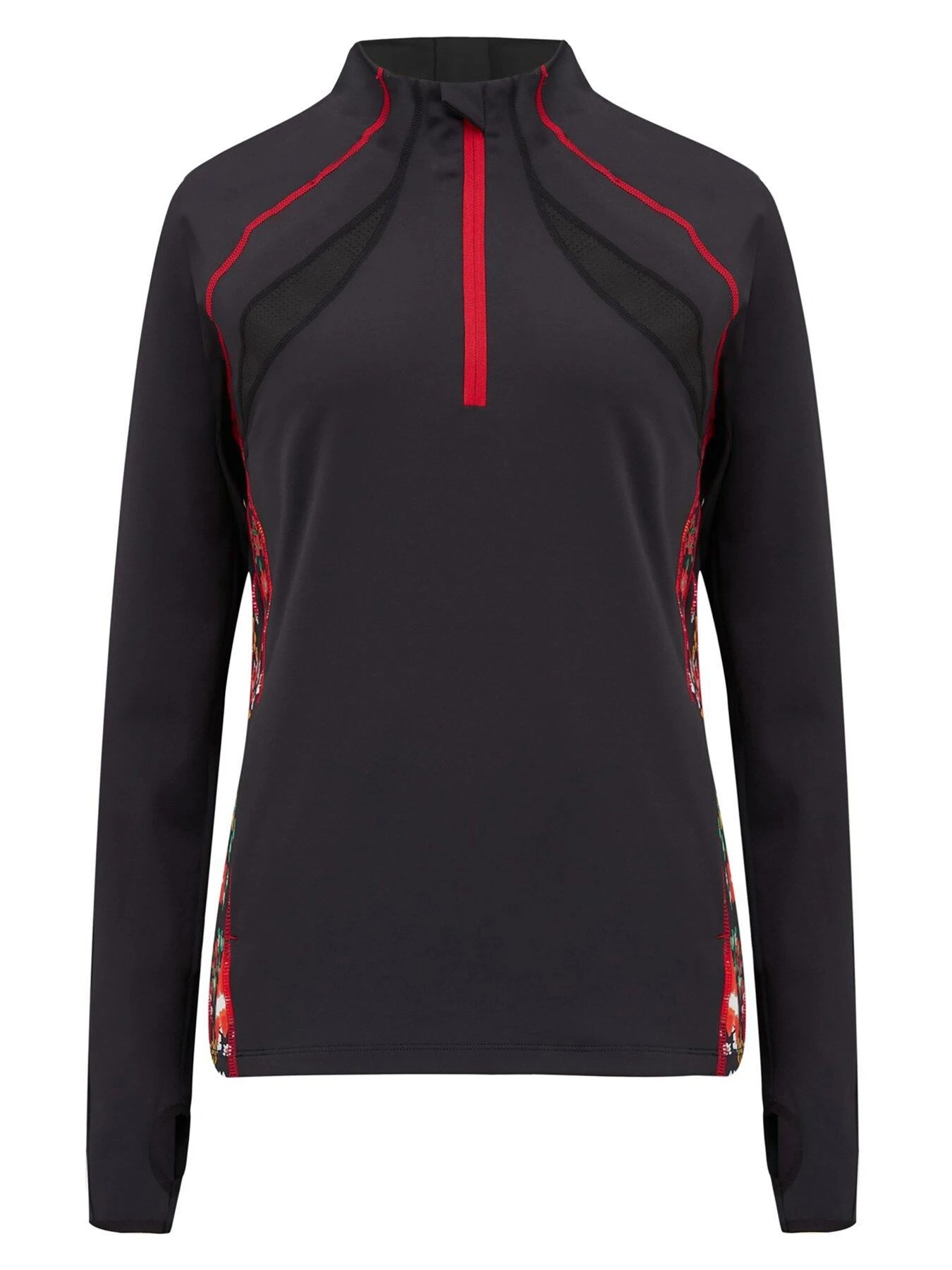 Whether you’ re going for a leisurely jog or a fast paced run you’ ll be supported in every step with this beautiful long sleeve running top. With sweat wicking fabric to support your sweatiest of workouts, this stylish half zip soft running top with printed side panels will take your workout up another level.