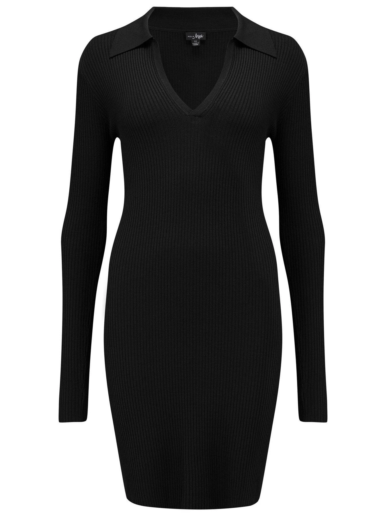 Pour Moi Eva Rib Knit V-Neck Collar Mini Dress