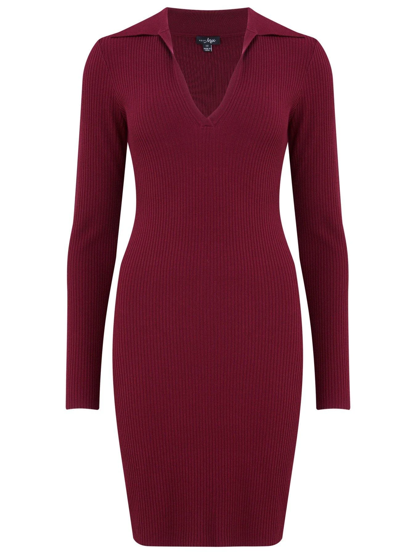 Pour Moi Eva Rib Knit V-Neck Collar Mini Dress