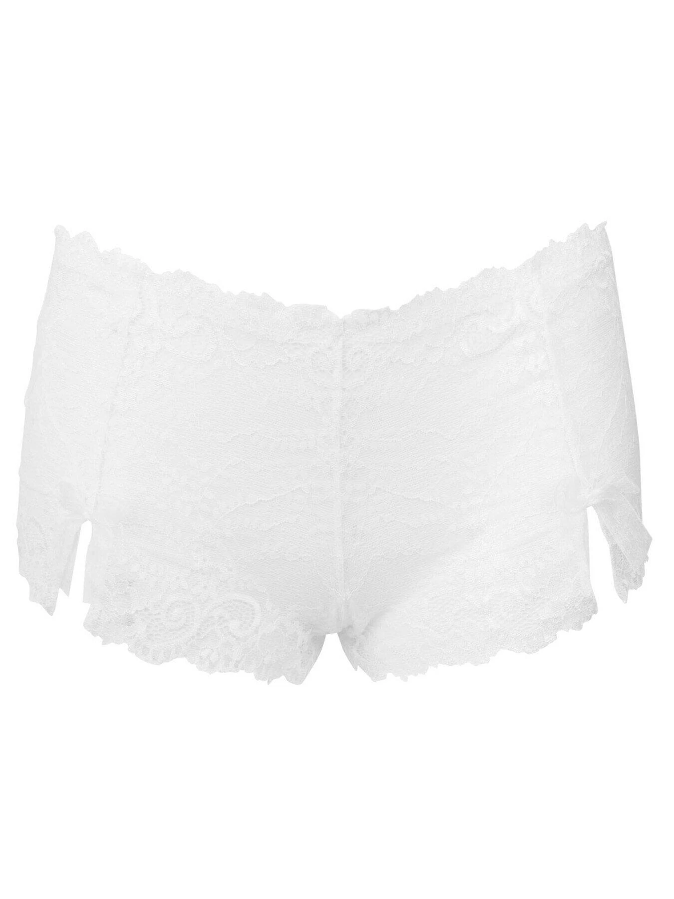 , using the Flora pretty delicate lace at the front panel this sweet shorty is a great new shape, with decorative splits at the front panel, finished with the beautiful sheer bows. Pretty spot mesh at back , with centre back rouching. This shape will fit and flatter.