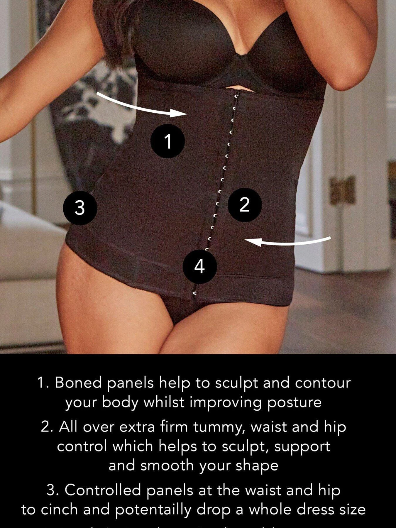Ooze confidence in our most controlling and firm shapewear collection yet! The Hourglass sculpting pieces help to slim, control and sculpt your body, with designs that have been specifically created to suit all body shapes. Our Hourglass Firm Control Waist Cincher has been designed so that you can wear it with your bra to help create an hourglass figure. Featuring a boned waist and contouring panels, this style will sculpt and shape your curves. With the added detail of front-fastening hook and eyes and soft elastic at edges, this style is perfect for wearing under your favourite party dress!