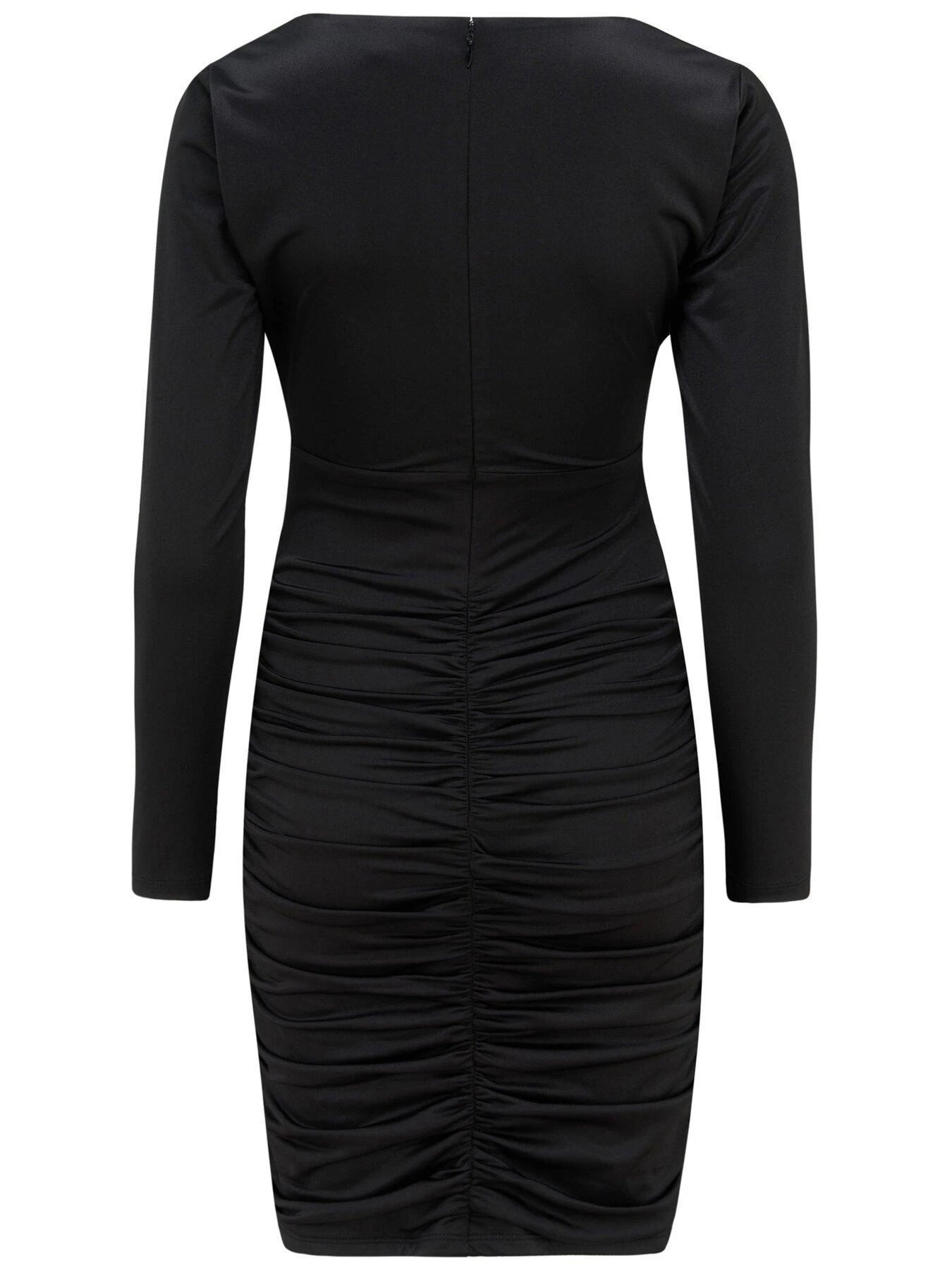 Your new party dress for the season has arrived! The Nina Shine Jersey Cut Out Mini Bodycon Dress is the answer to all your style dilemmas. This flattering bodycon style features on-trend cut outs for a sexy finish. With a sweetheart neckline and body loving details such as ruched detailing for the perfect night out look. Style up this long sleeve mini dress in beautiful shine jersey fabric with a pair of strappy heels.