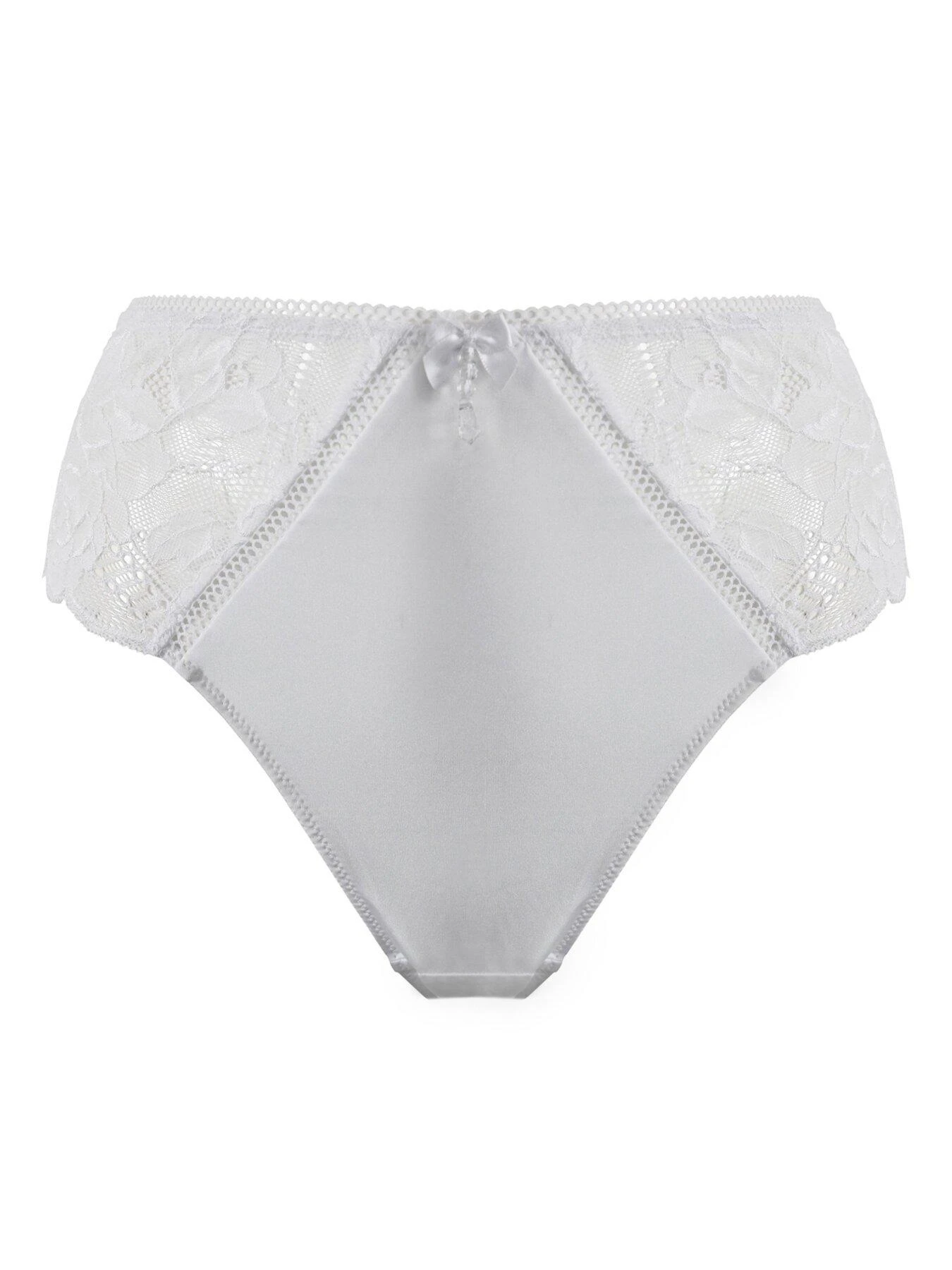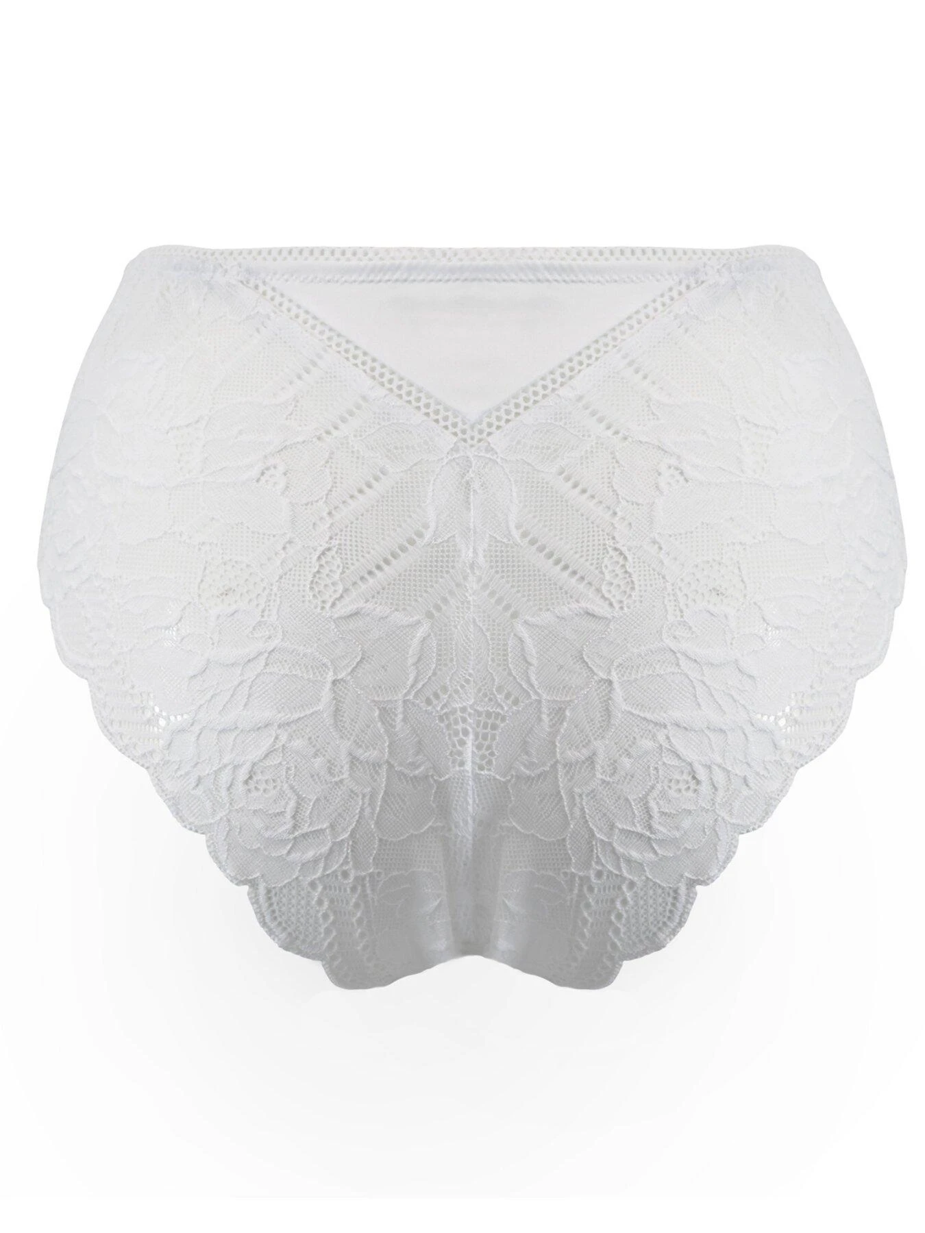 Ooo La La, we know you’d look and feel amazing in the high-waist Brazilian briefs. Designed for a good level of coverage, these briefs are every bit luxurious. Featuring opulent two-toned scalloped lace on the sides and back and soft micro front panel with lace detail over the leg line for the ultimate mix of comfort and luxury. With an elasticated waistband and finished with a delicate bow jewel droplet detail at the front.