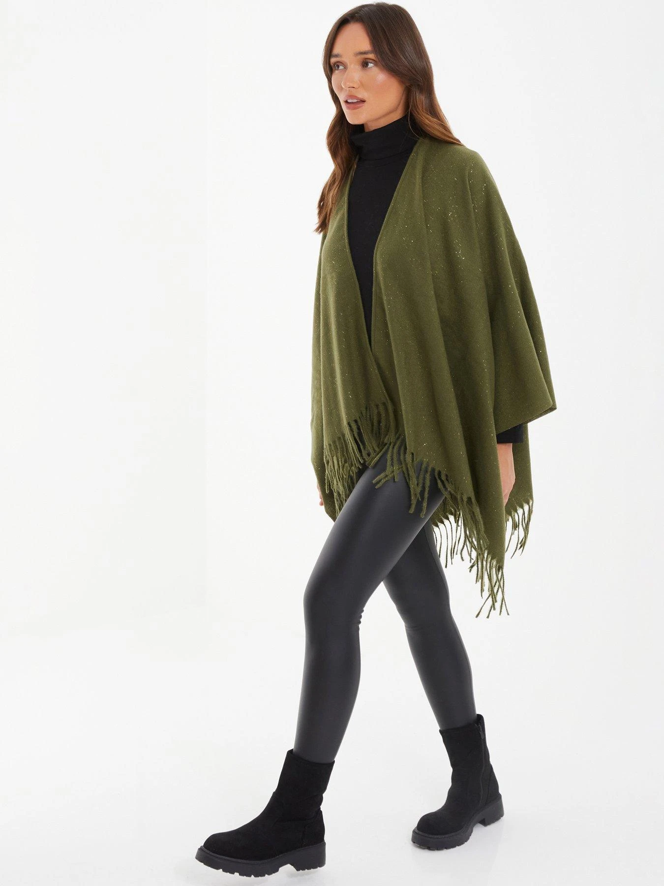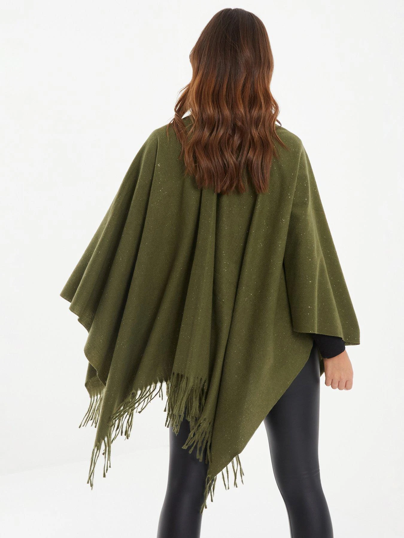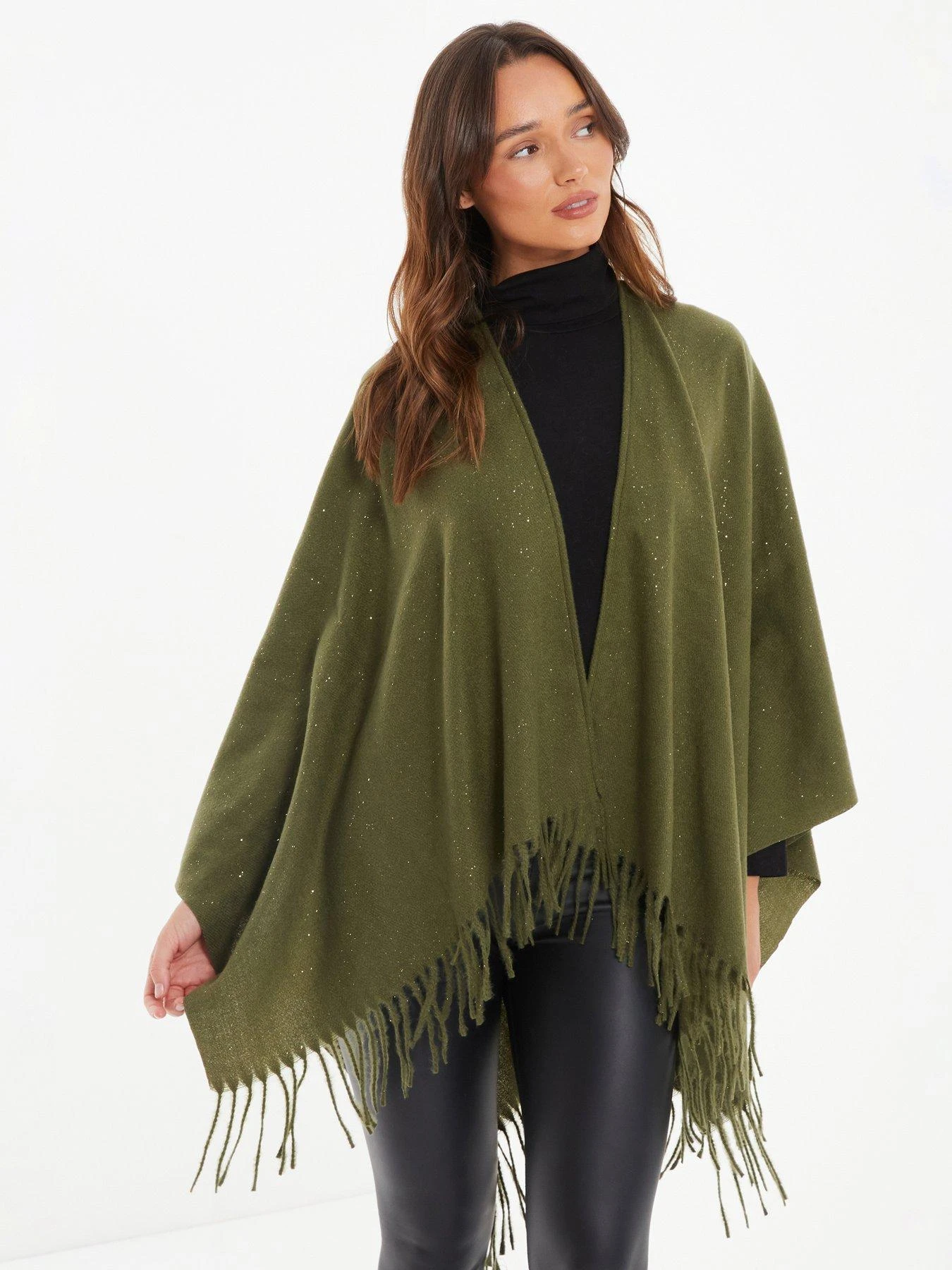 Quiz Khaki Glitter Tassel Cape