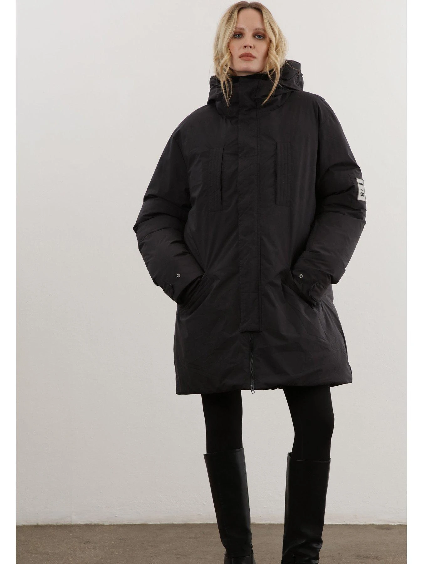 Religion Oversized Hooded Padded Coat – Black