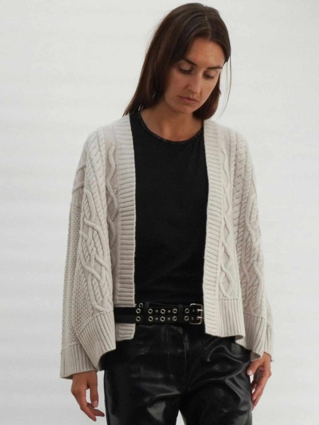 Religion Short Cable Knit Cardigan – Grey