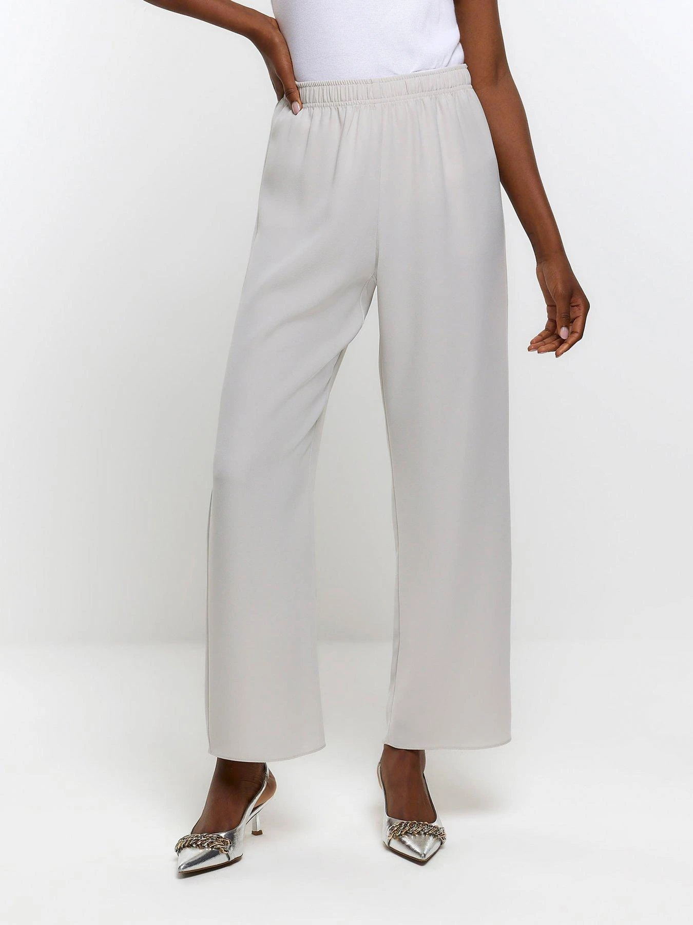 River Island Elasticated Wide Leg Trouser – Grey