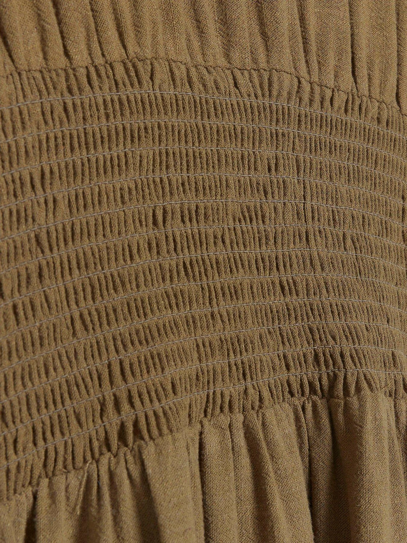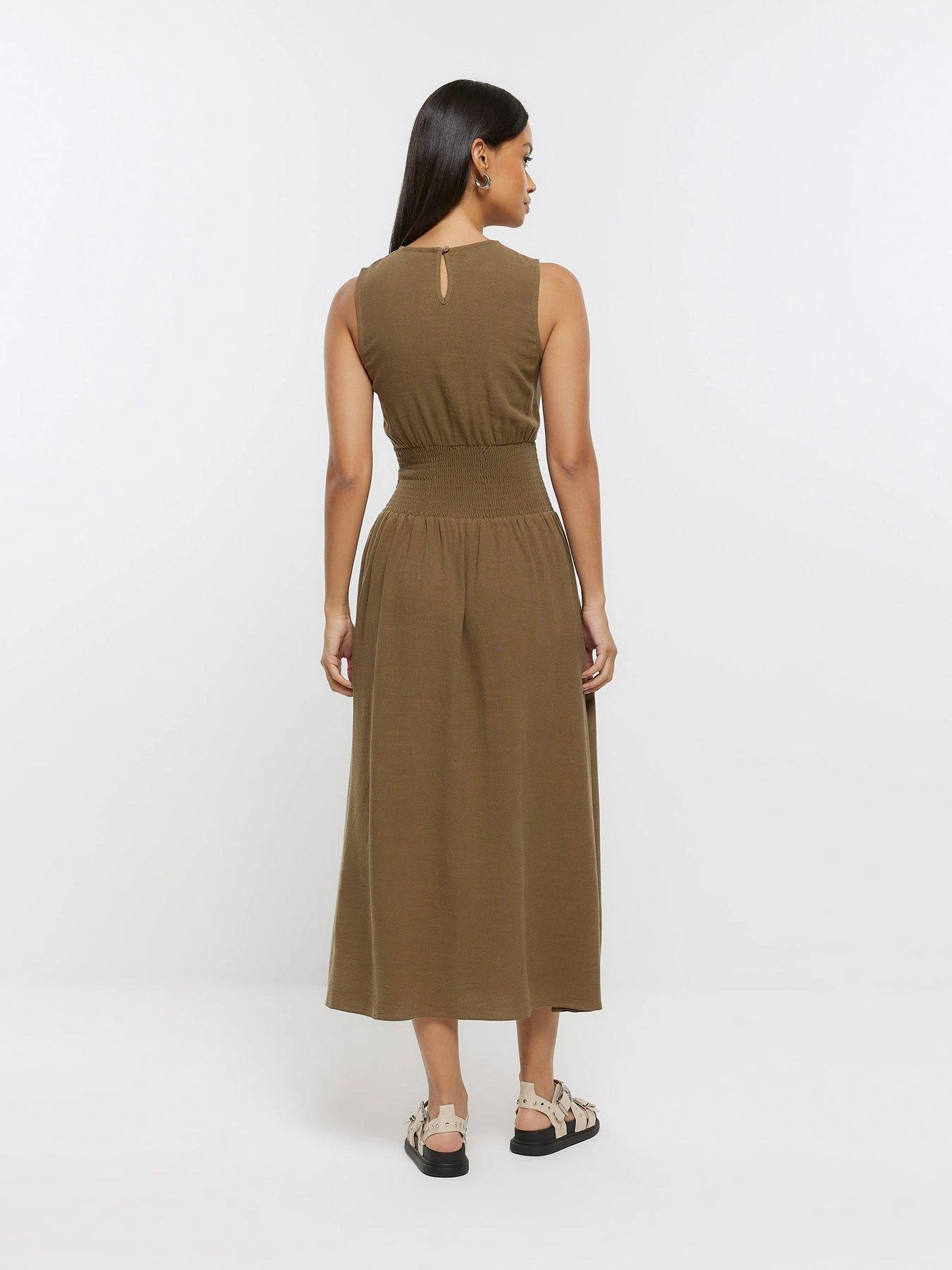Shirred waist,Crew neckline,Sleeveless,Midi length