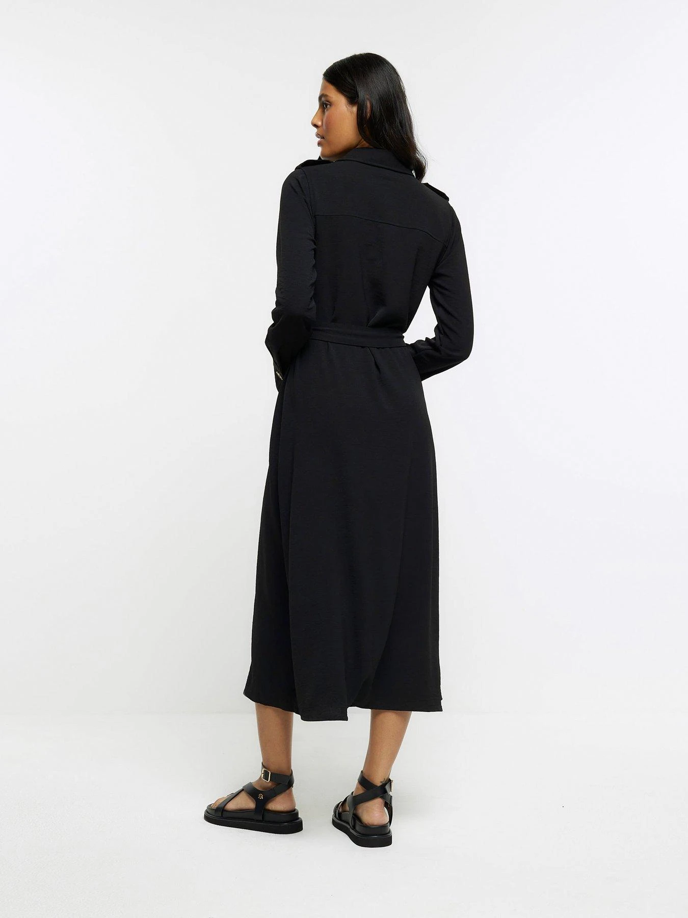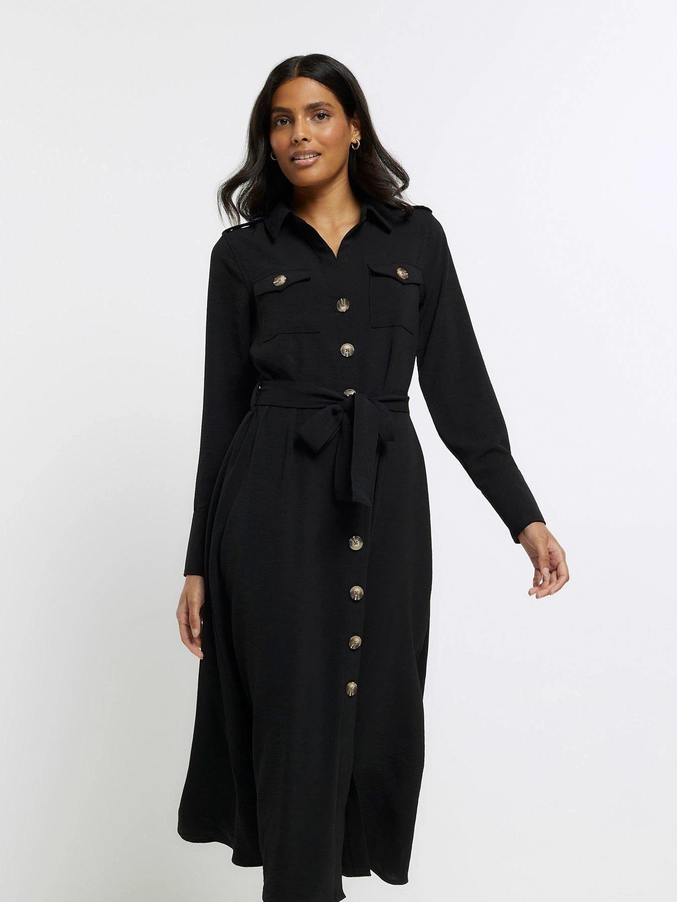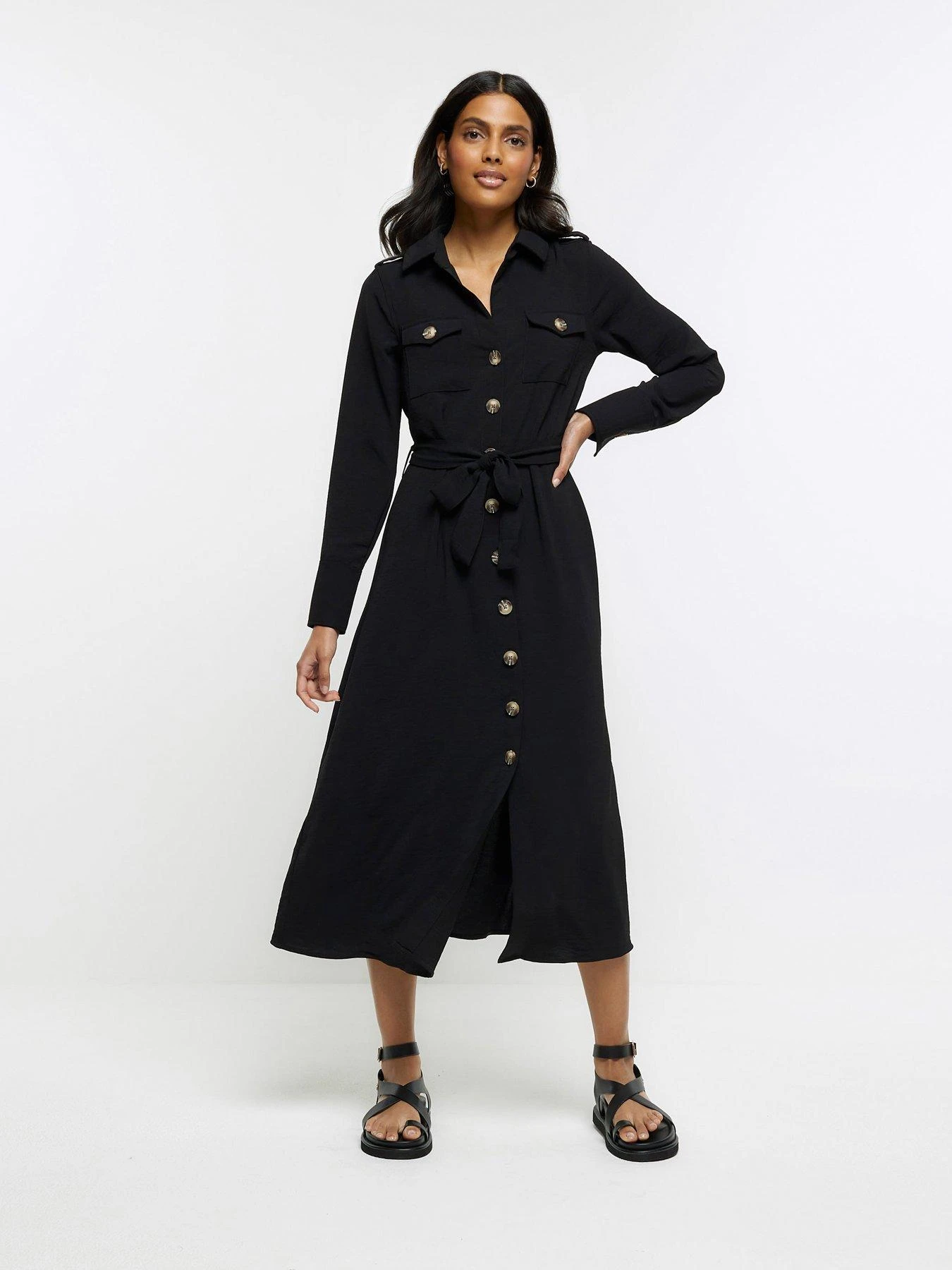 River Island Utility Belted Midi Dress – Black