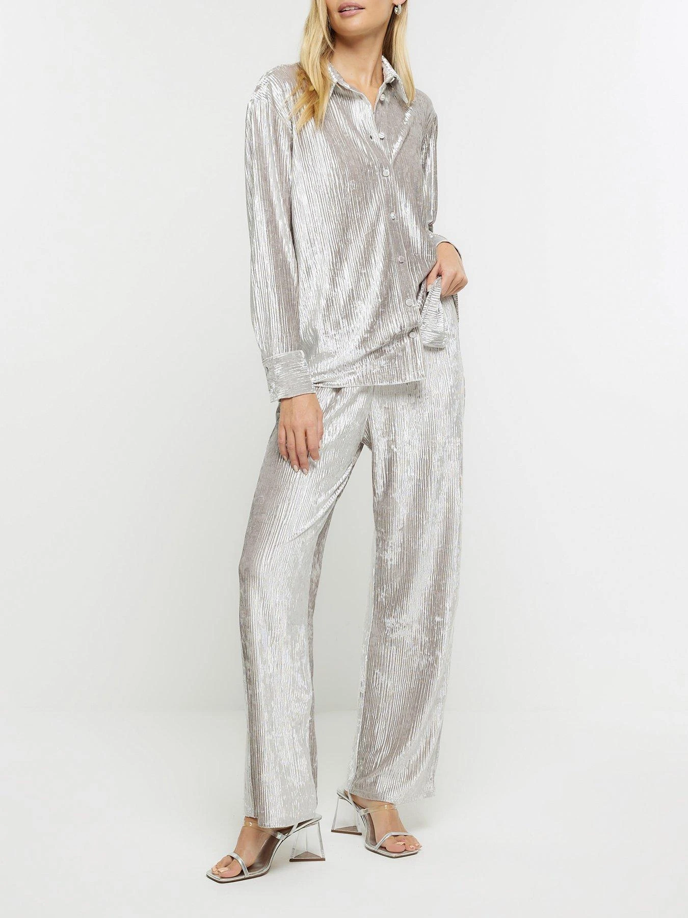 River Island Velvet Elasticated Trouser – Silver
