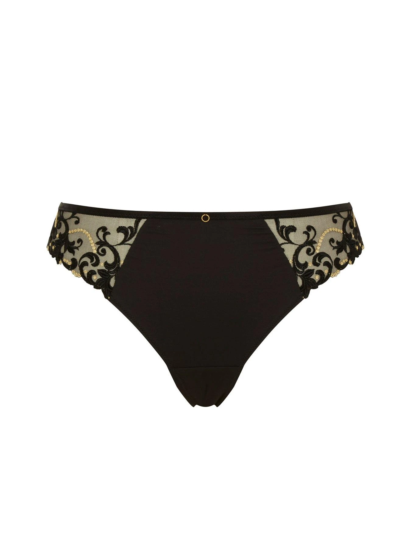 Nova co-ordinating thong incorporates super smooth microfibre with embroidery along the leg panels.