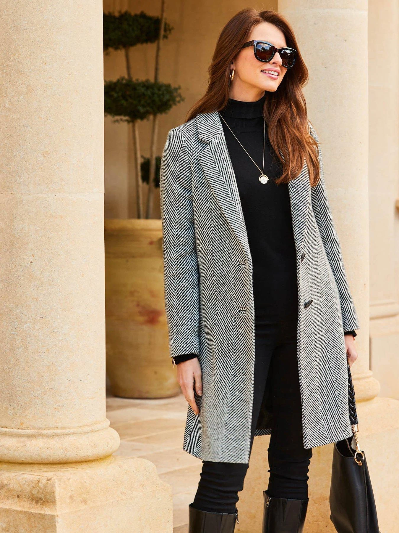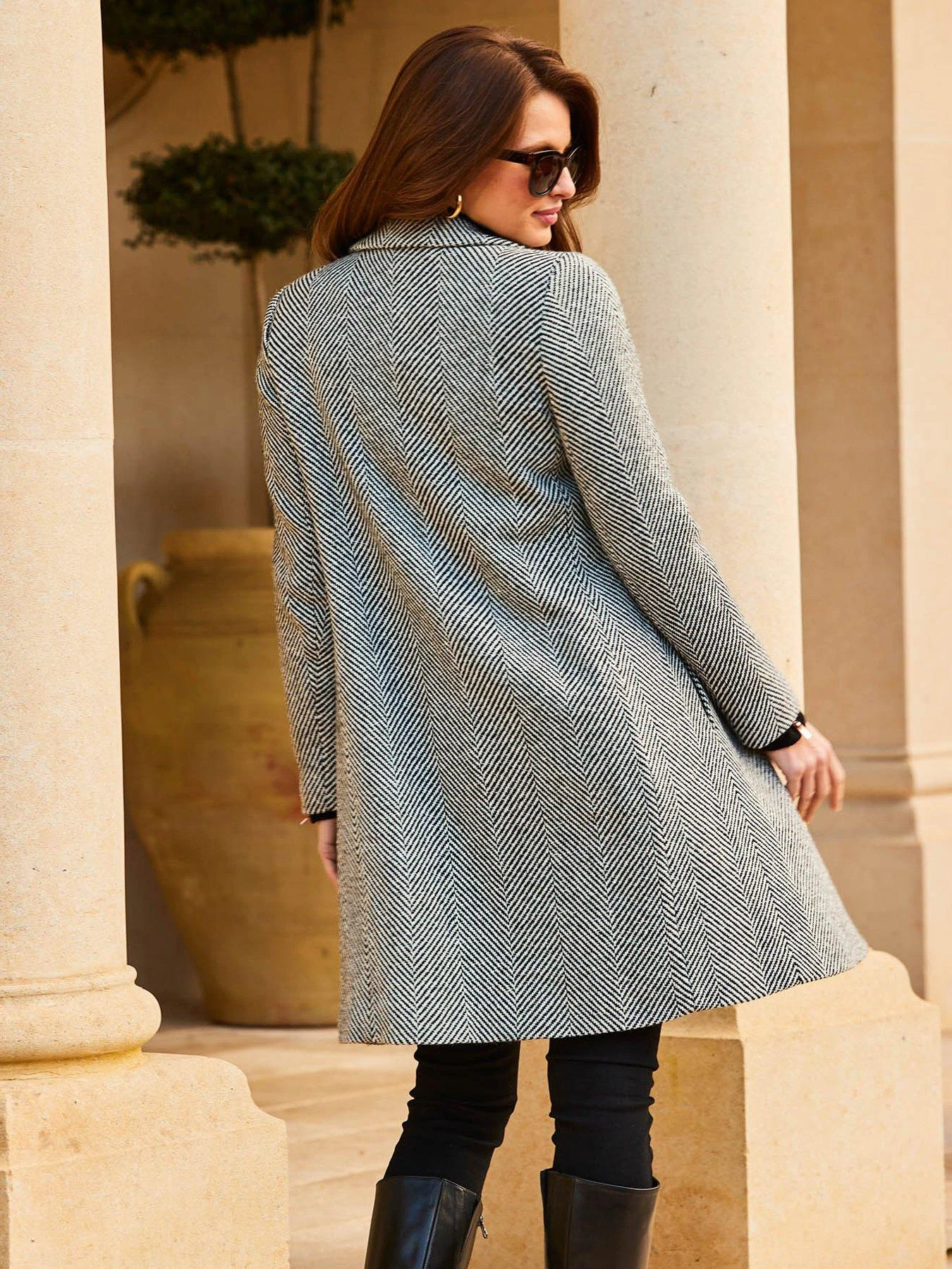 Sosandar Sosandar Black And White Herringbone Wool Mix Coat