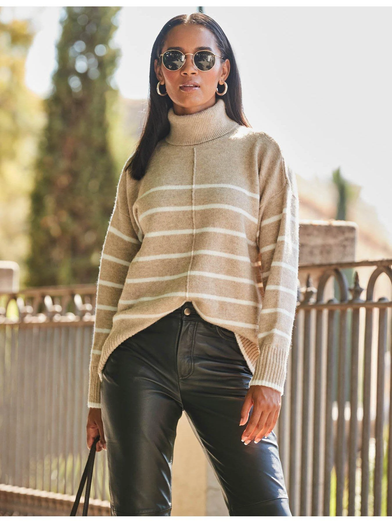Sosandar Sosandar Taupe & White Stripe Roll Neck Jumper