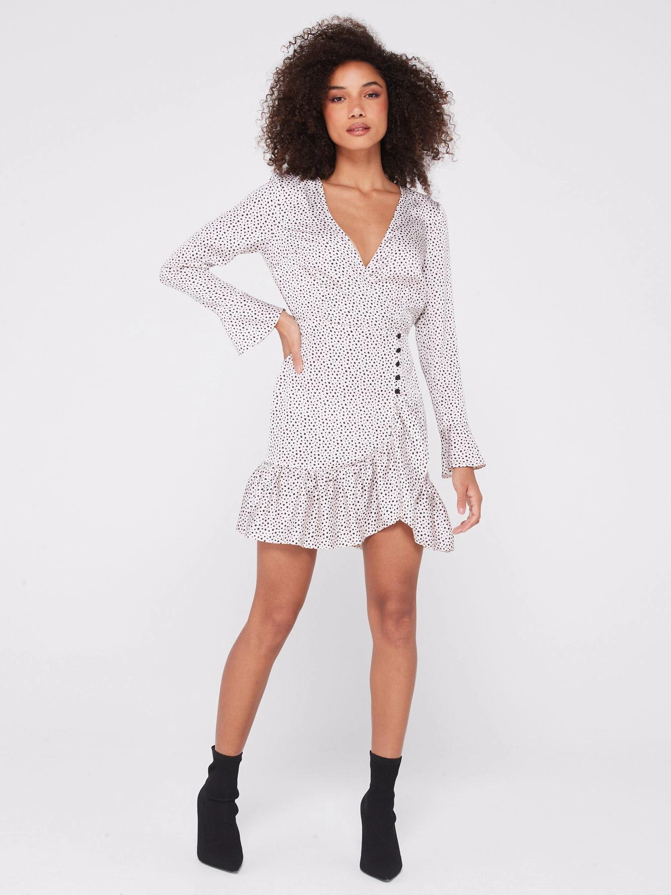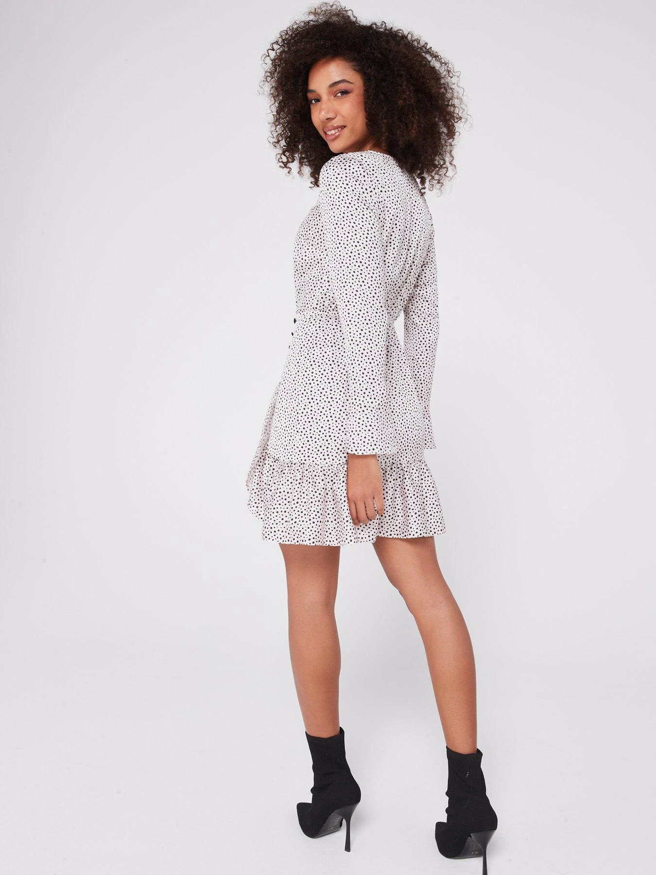 V By Very Long Sleeve Frill Spot Mini Dress