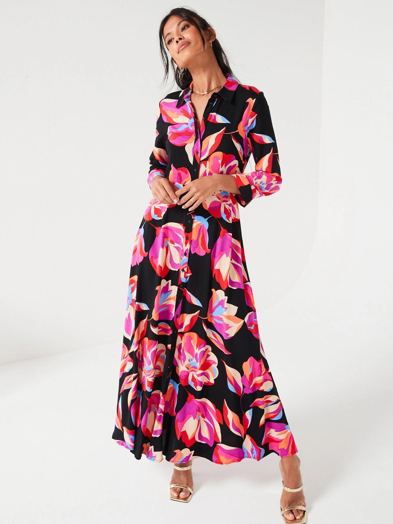 Y.A.S Savanna Printed Maxi Shirt Dress – Black